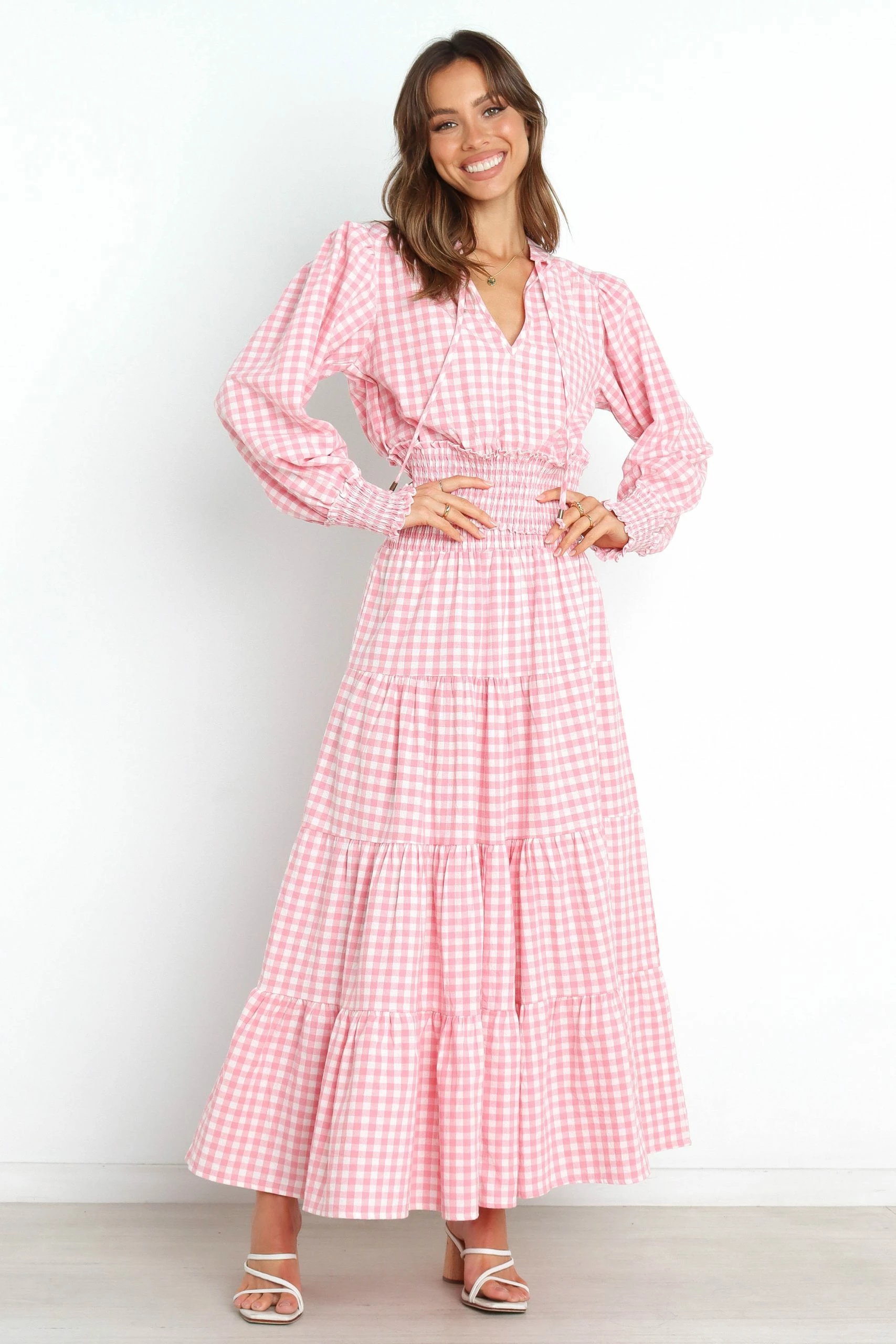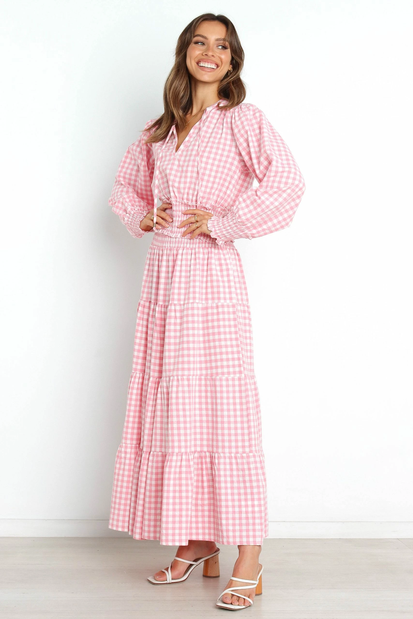 | DETAILS This maxi skirt is sure to turn heads! It has a thick shirred waistband that hugs your curves perfectly and an elastic waistband for ultimate comfort. The tired gathered skirt panels give the skirt a beautiful drape, plus the gingham pattern adds a fun, flirty touch.