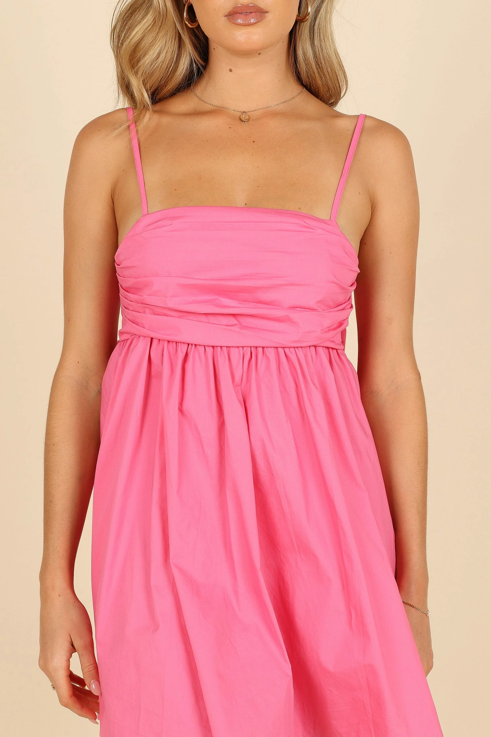 | DETAILS This flirty and feminine mini dress is sure to make heads turn. Crafted with a babydoll silhouette, this above-the-knee length dress features a straight neckline, thin adjustable straps and a ruched bust detail for extra oomph.