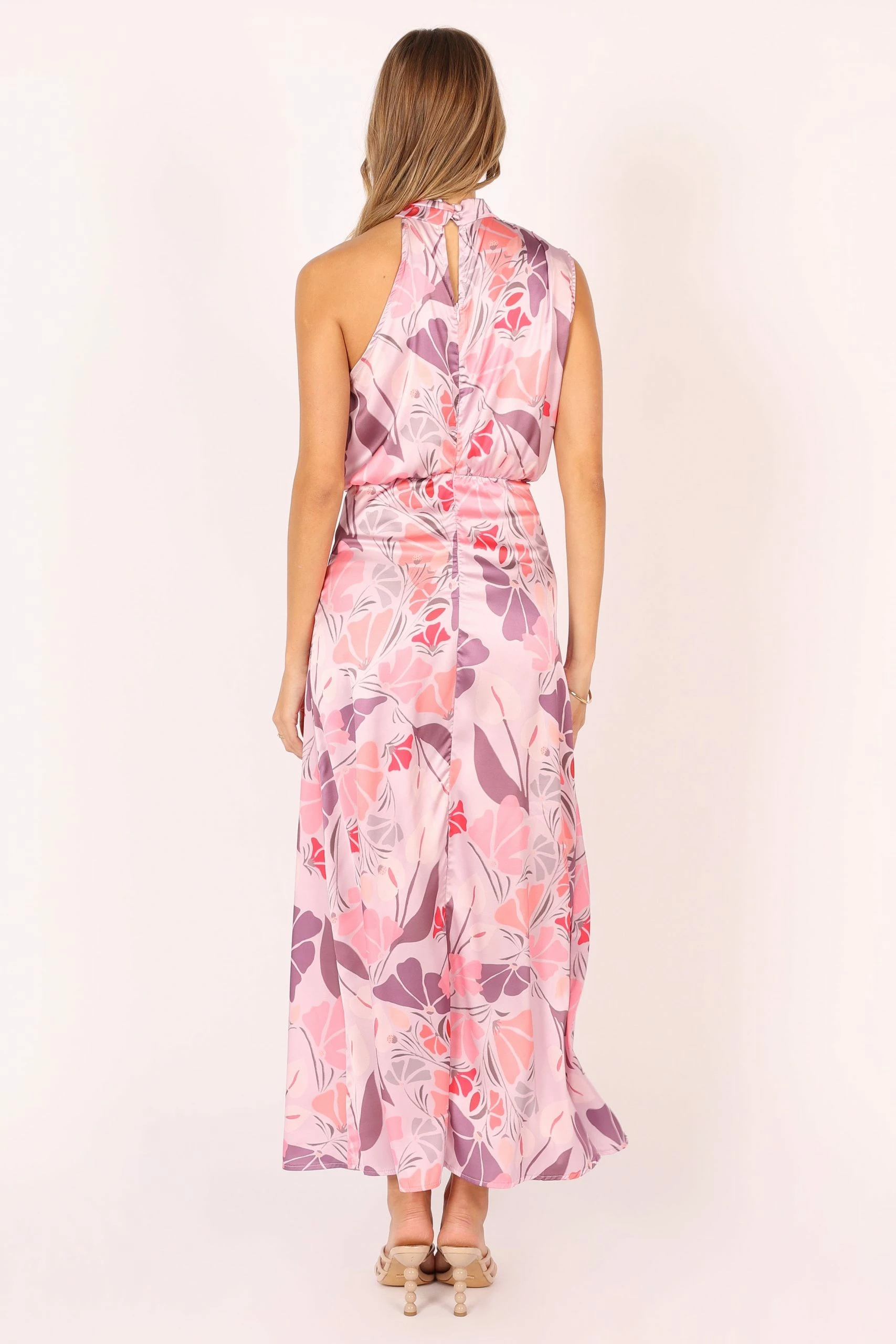 | DETAILS This beautiful maxi dress is perfect for any event. Its classic yet modern design features an asymmetric high round neckline, a back neck opening with button close and gathered pleated detail on the neckline. It has an elasticised waist that flatters your figure and a flattering front split.