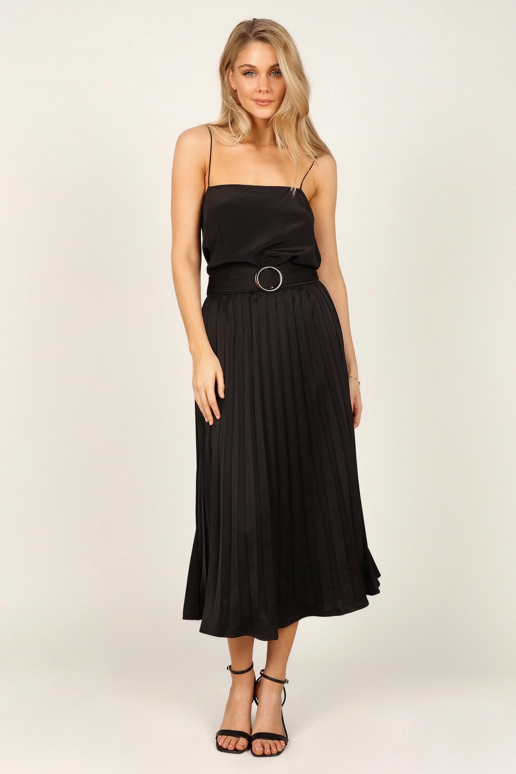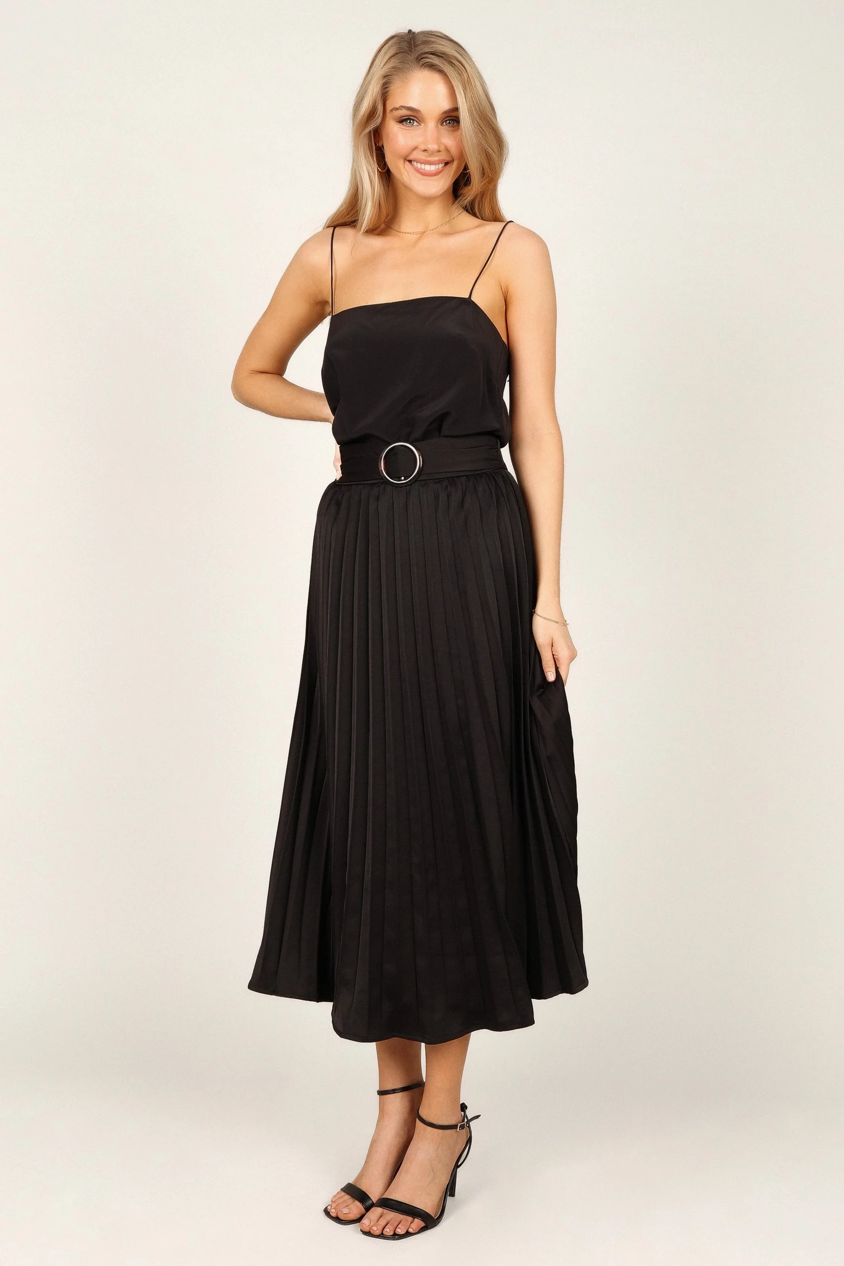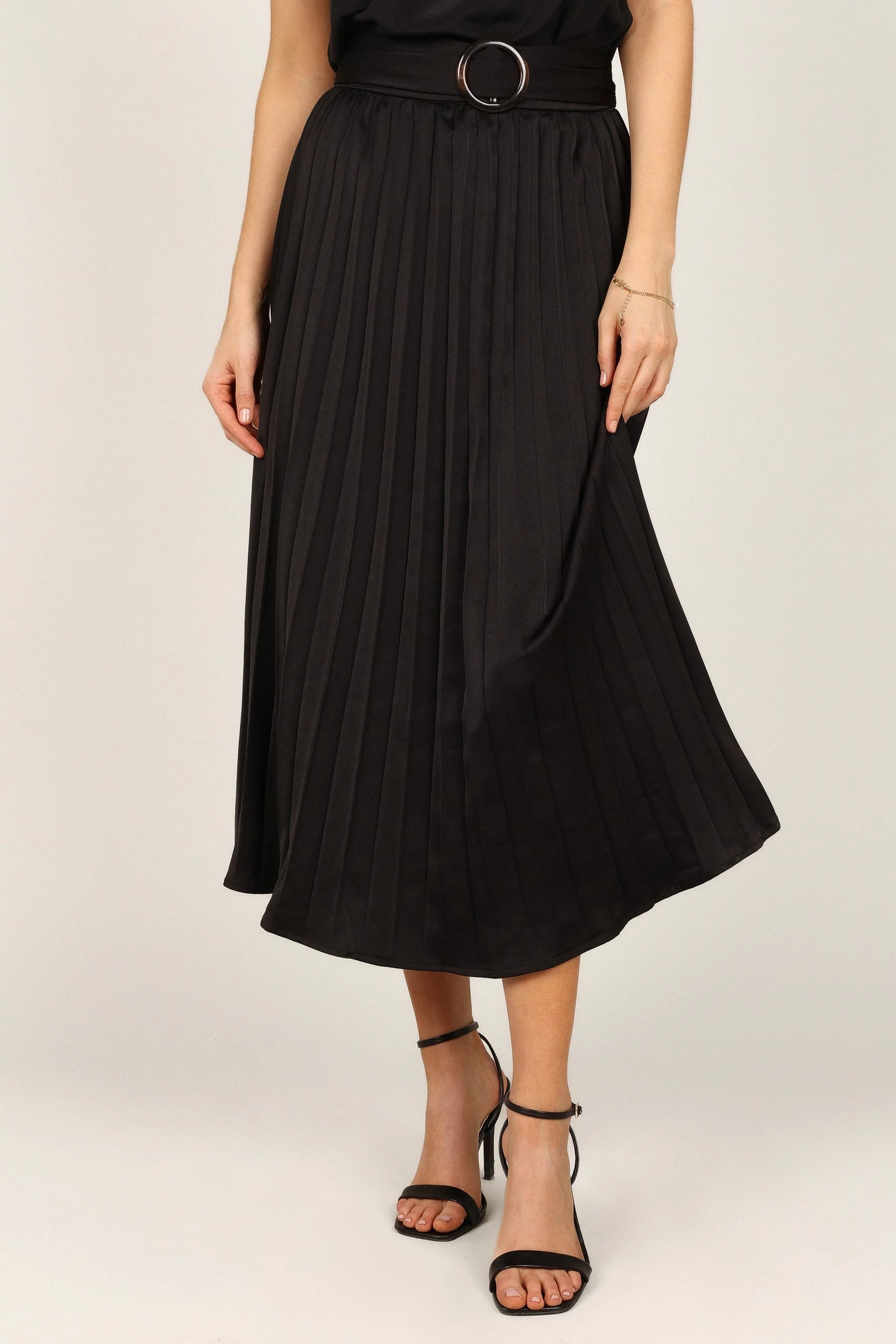 | DETAILS Are you looking for a classic skirt with a playful edge? Look no further than this pleated A-Line skirt – the perfect item to transition from day to night. Featuring a midi length, back invisible zip and a tortoiseshell acrylic buckle for added flair, it’s sure to become one of your wardrobe staples.