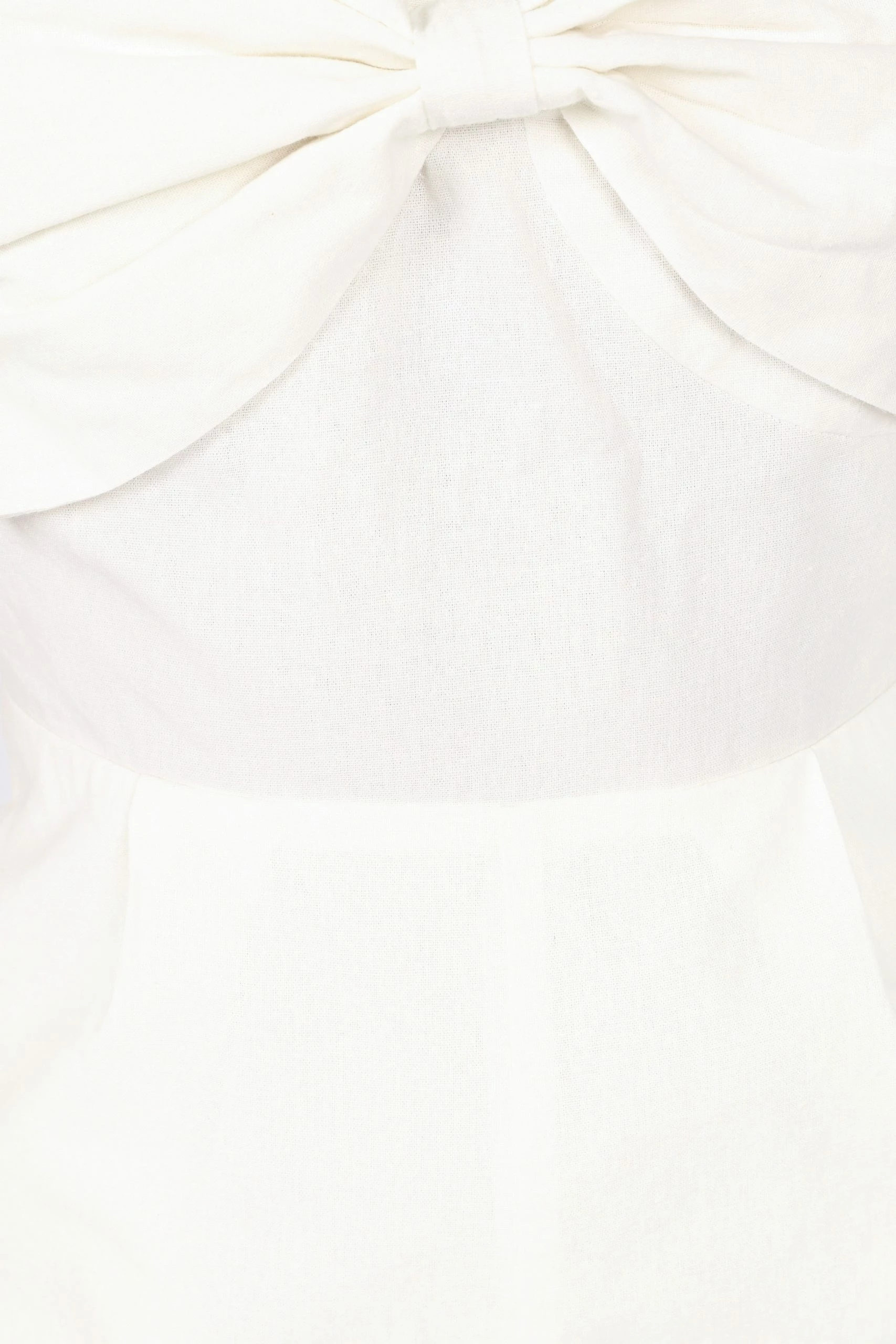 | DETAILS If you’re looking for a fun, feminine look that will take you from day to night, this strapless style romper is the perfect choice! Featuring an adorable bow feature on the bust and in classic white, it’s sure to turn heads wherever you go.