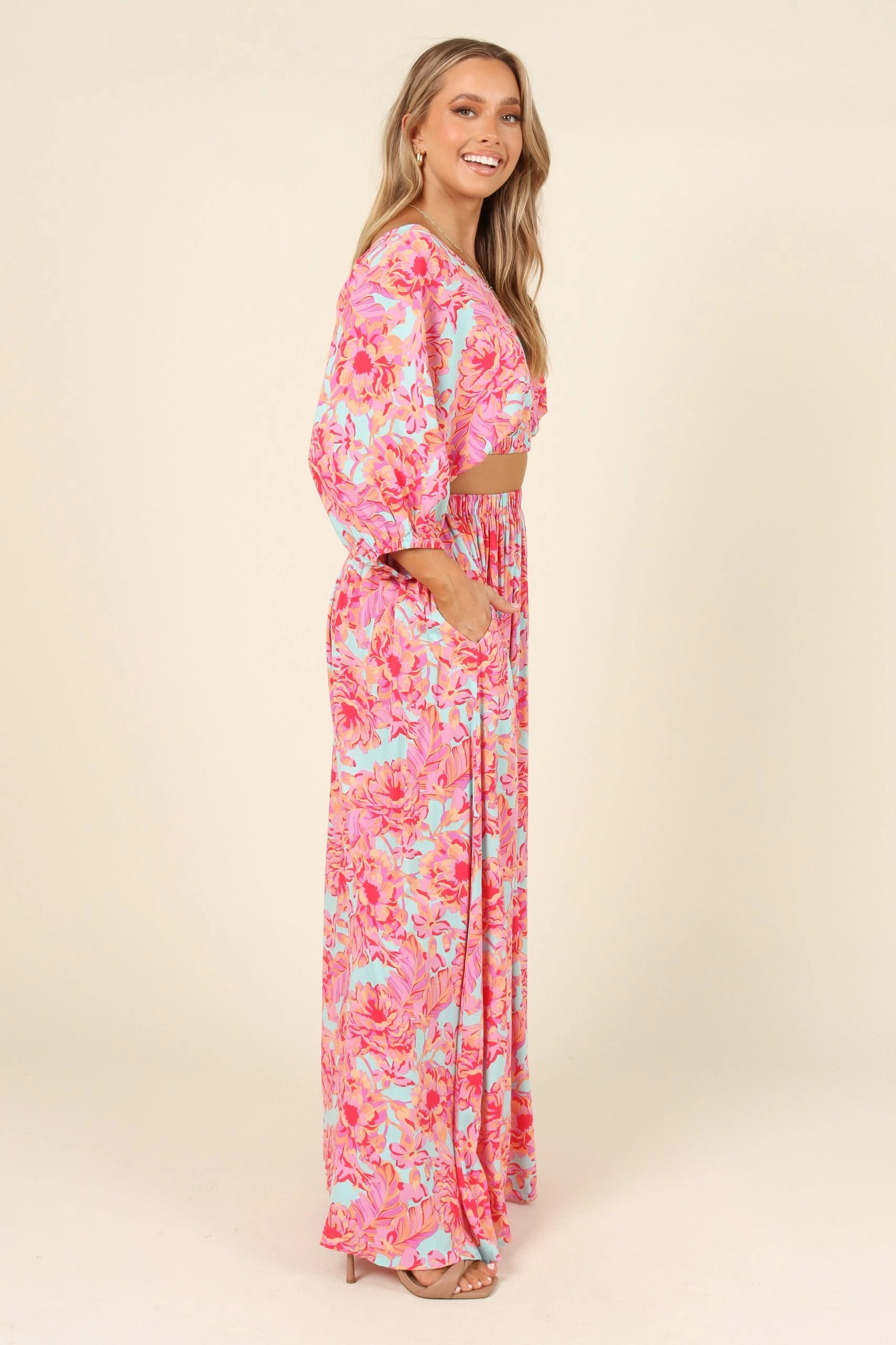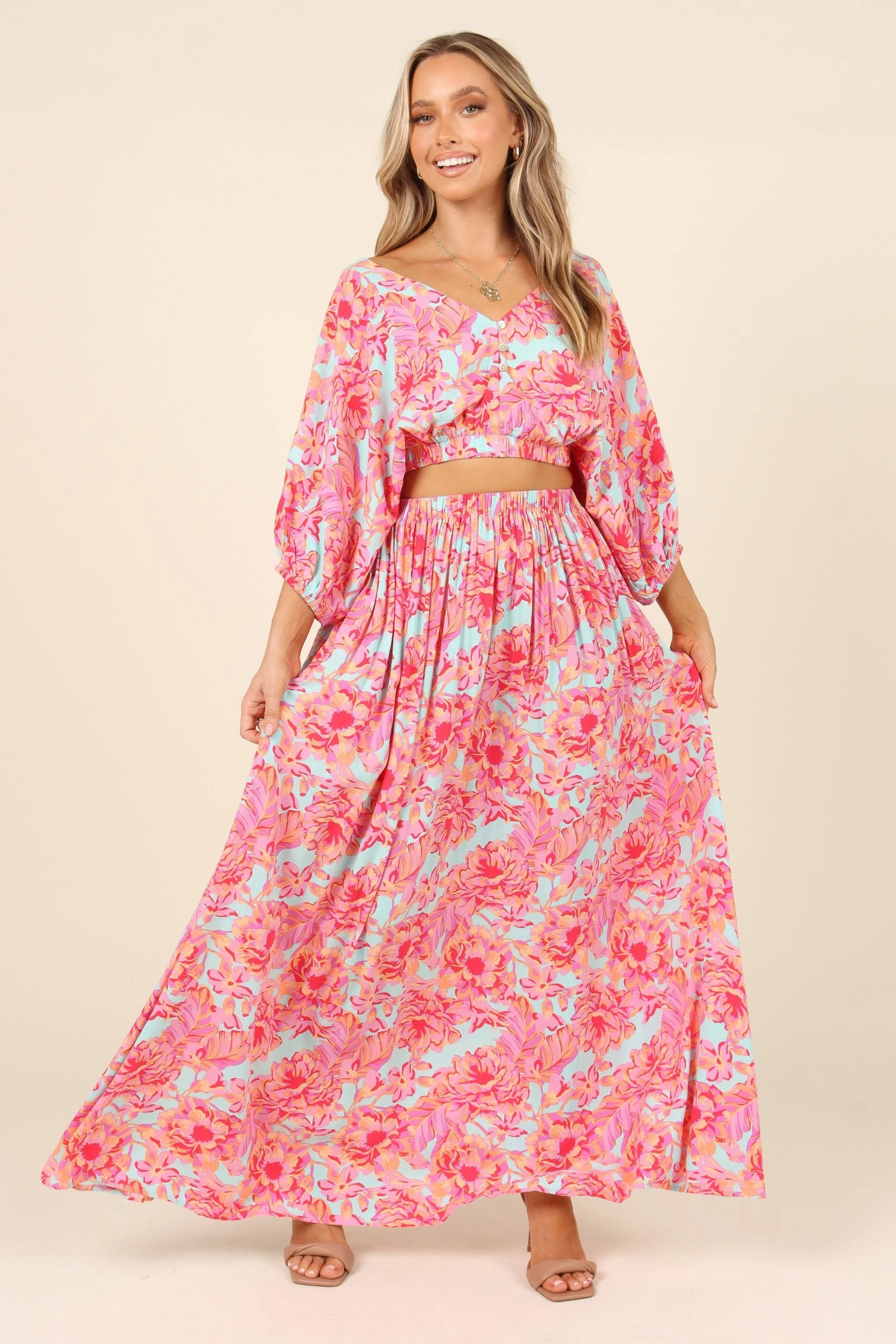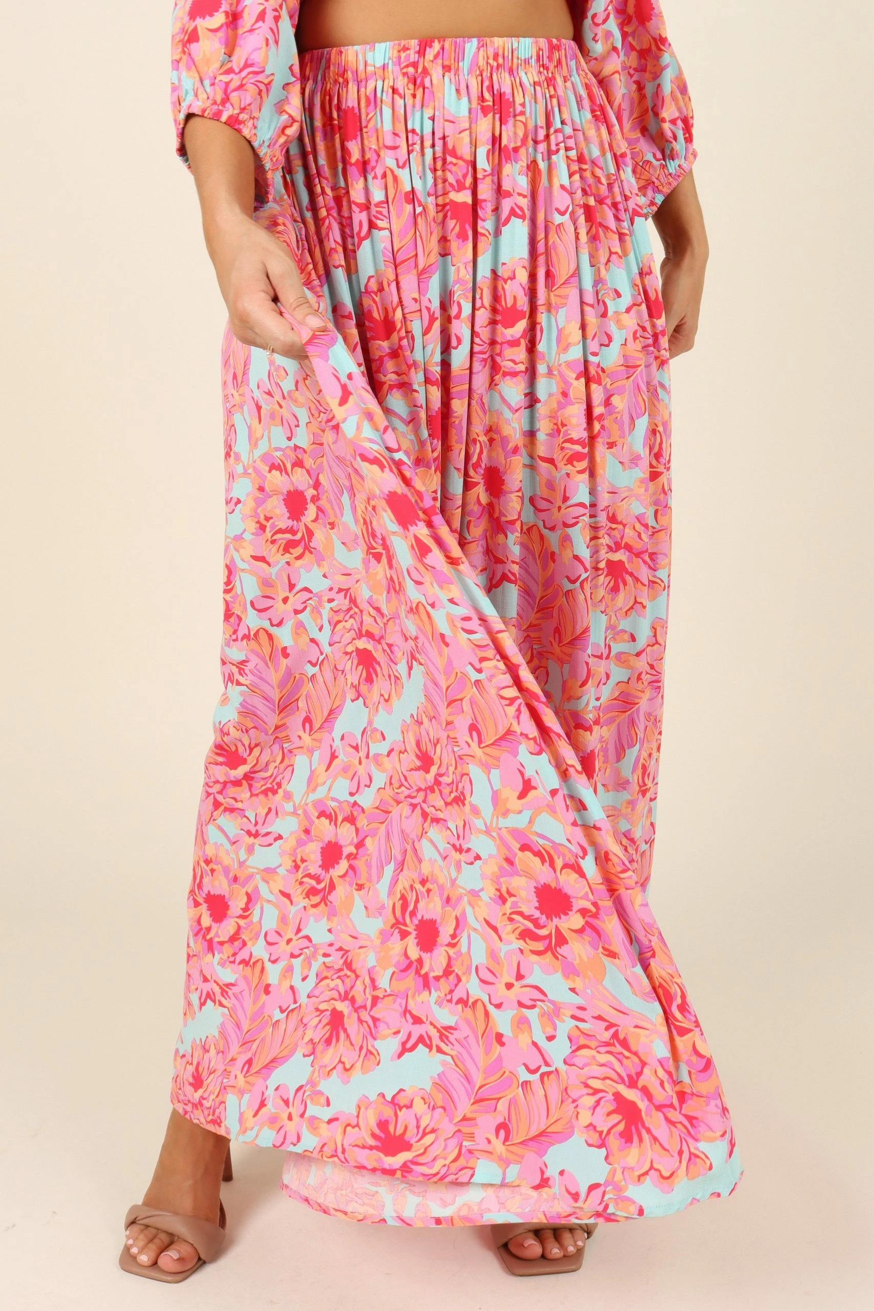 | DETAILS Dress to impress with this maxi skirt! This beautiful maxi length skirt features a high waisted fit and an elasticised waistband for maximum comfort. The bright floral print will make you stand out in any summer occasion.
