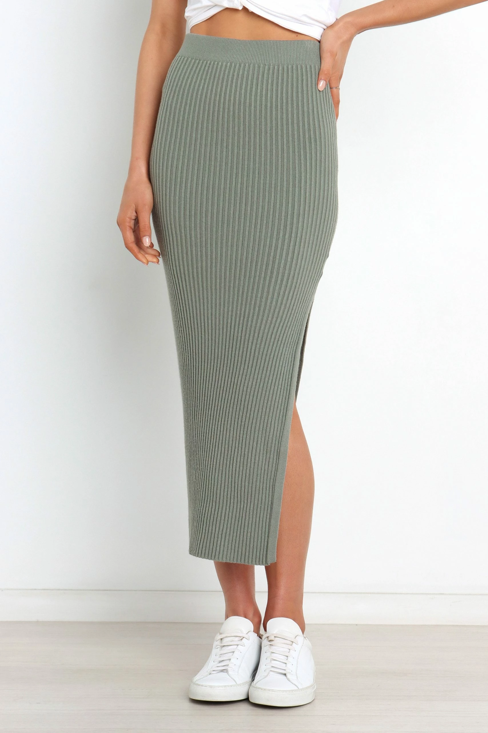 | DETAILS Make a fashion statement in this must-have midi-length skirt! Crafted from stretch ribbed knit for an easy fit, its elasticised waistband ensures maximum comfort and style. With a side split feature to show off your legs, you’ll be sure to turn heads when you wear it.