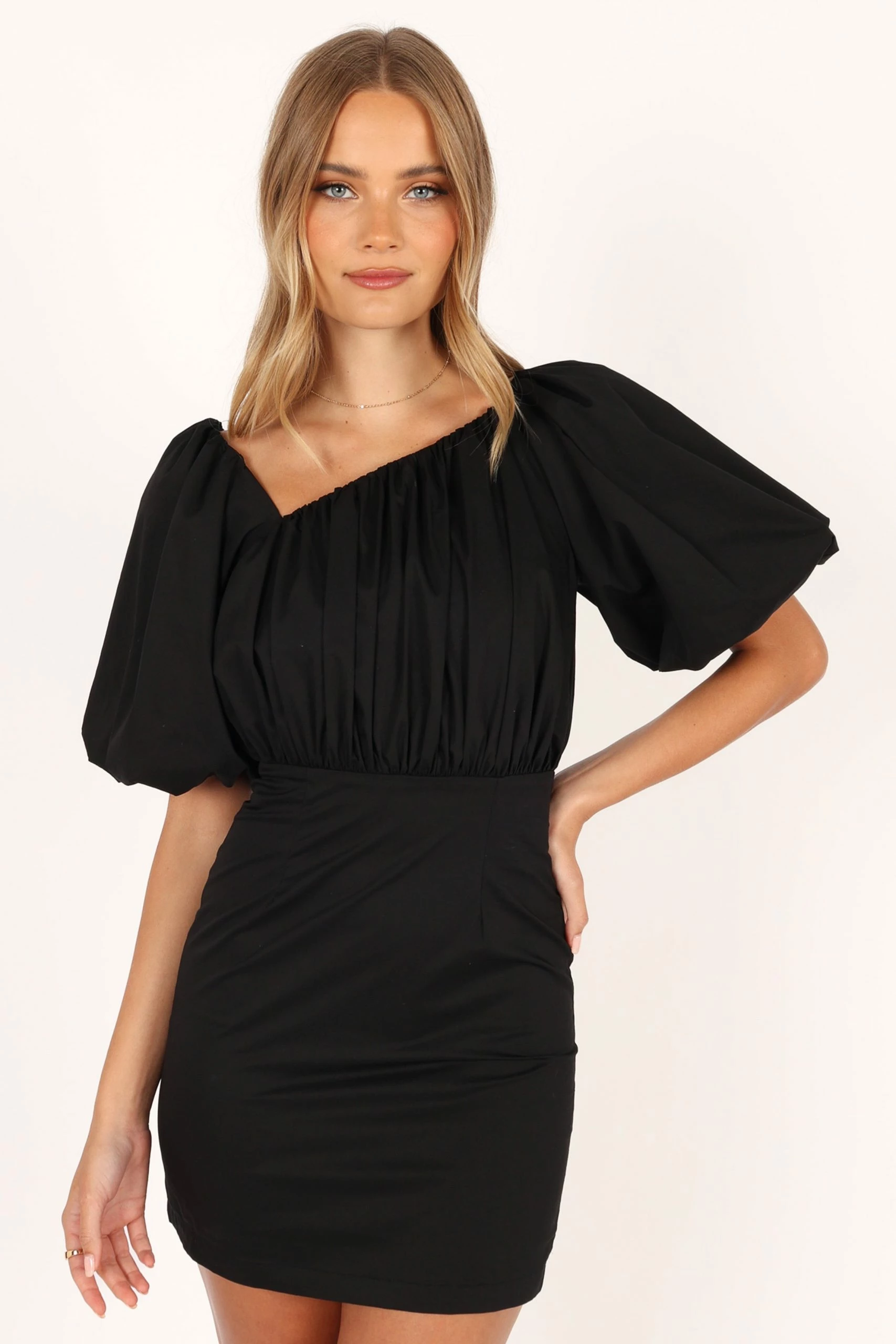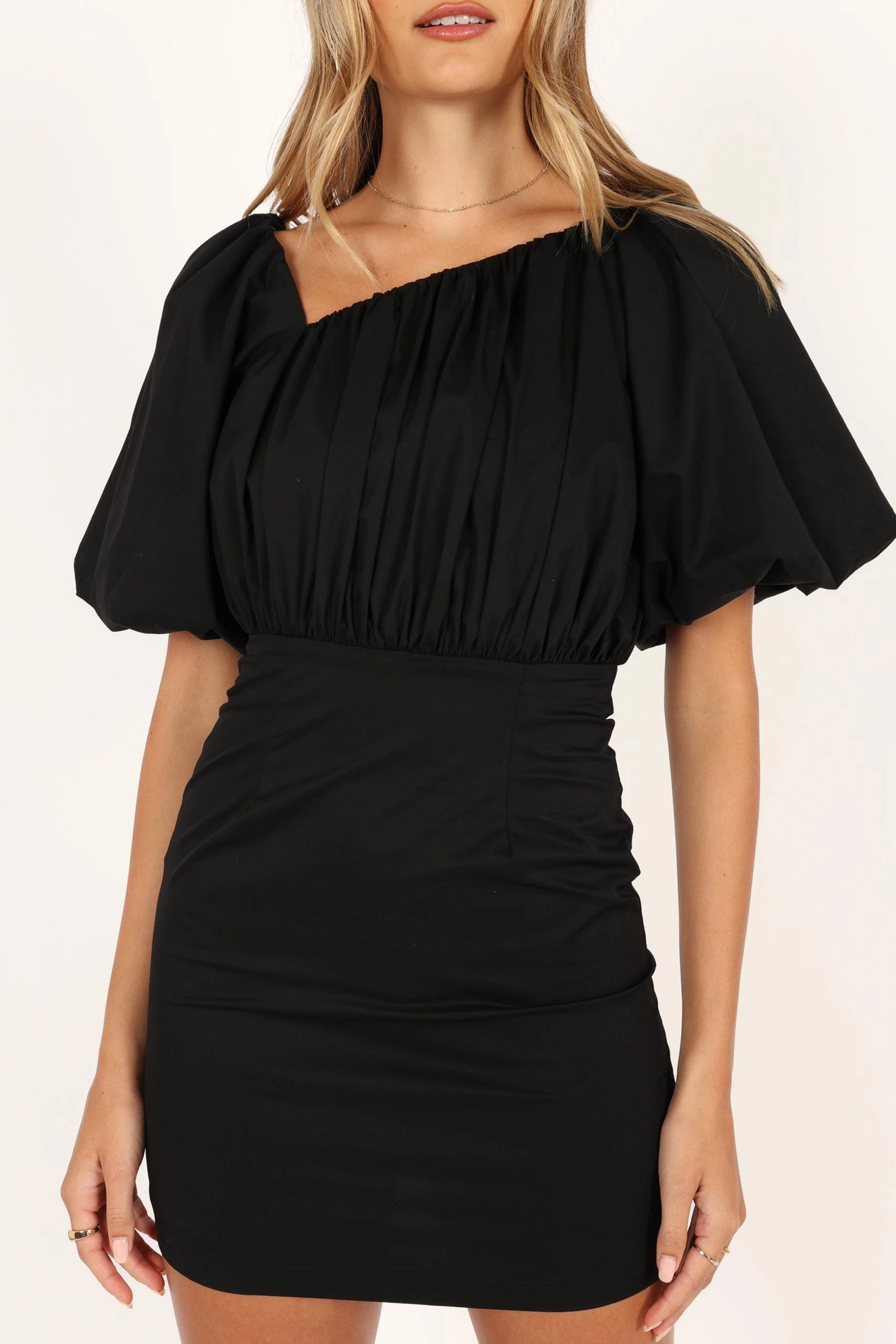 | DETAILS Get ready to turn heads in this ravishing one shoulder style mini dress! Crafted with a stunning asymmetric neckline and short puff sleeves with elasticised cuffs, it’s the perfect party piece.