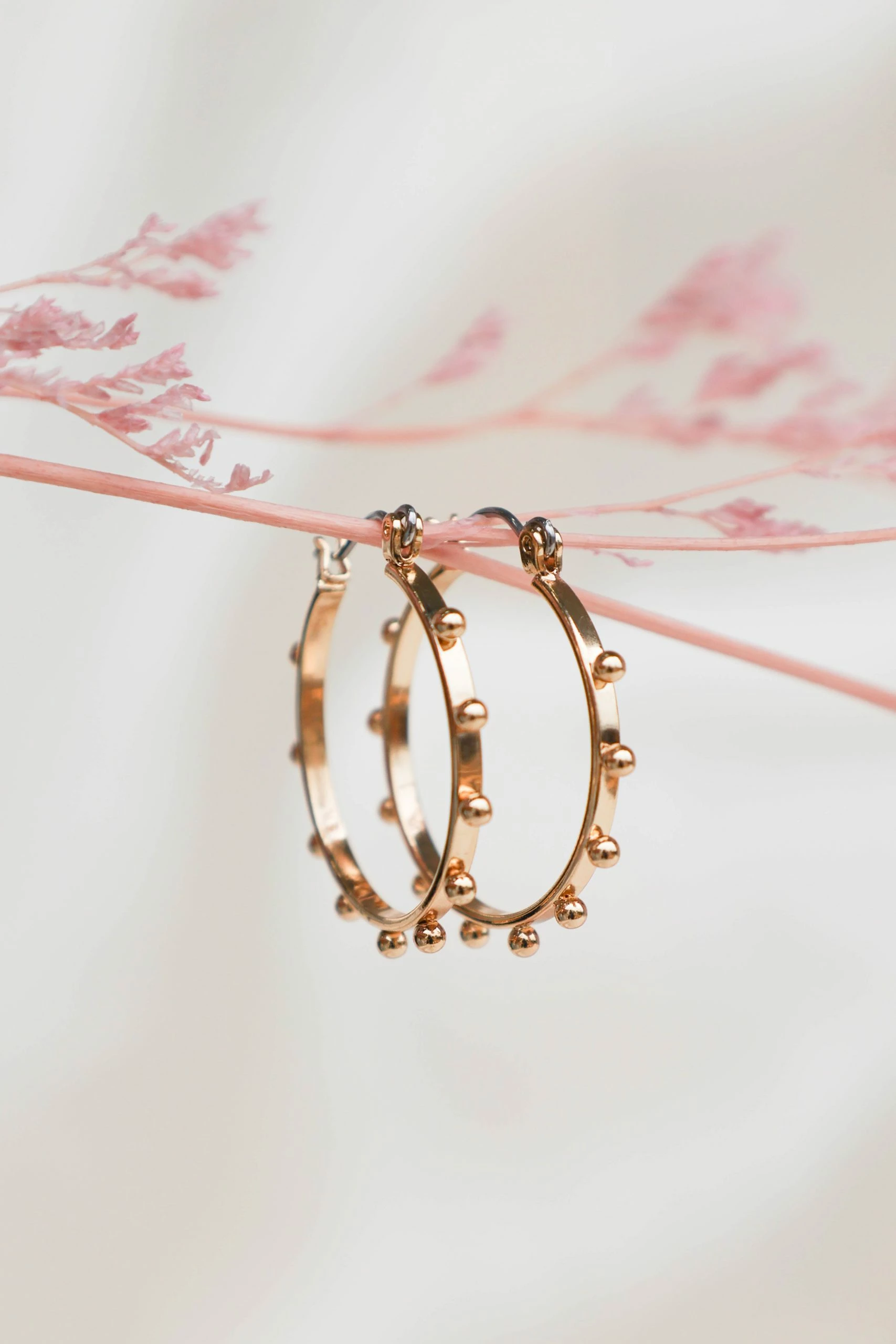 | DETAILS When you want to make a bold statement, textured hoops are the way to go! Our gold-plated earrings look stunning when paired with any outfit; from an everyday ensemble to a night out on the town.