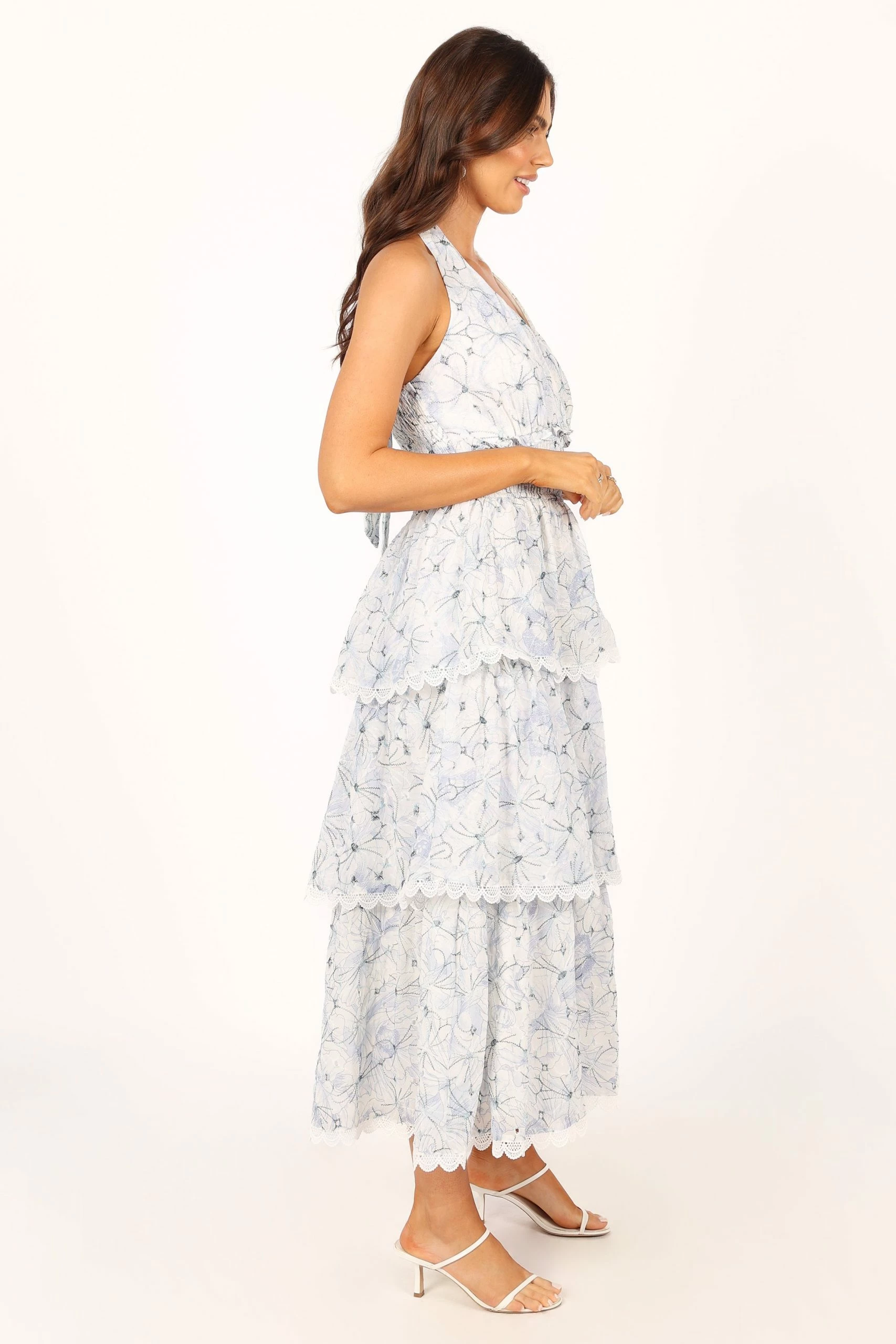 | DETAILS This stunning blue flower print midi dress is the perfect addition to your summer wardrobe. The midi length provides a classy and elegant touch, while the blue floral print adds a timeless and feminine appeal.