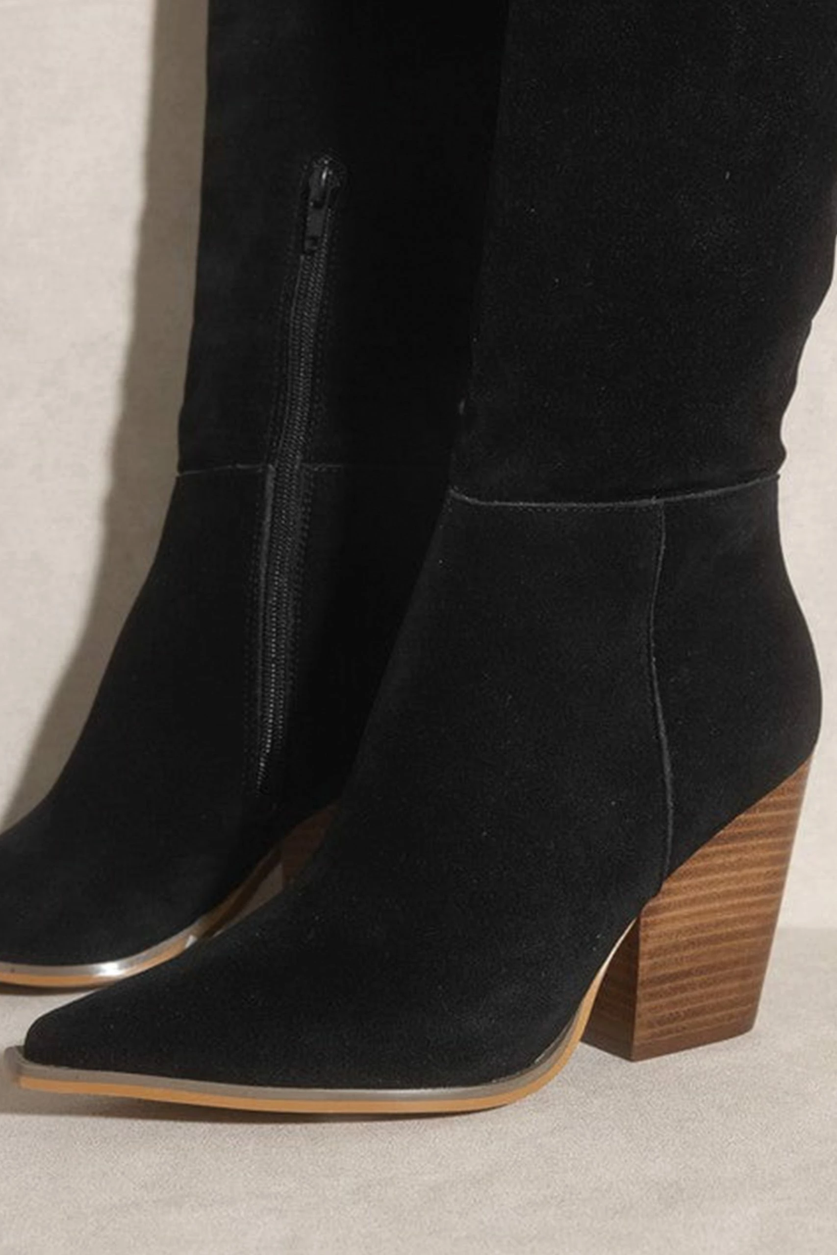 Clara Knee High Western Boots – Black Suede