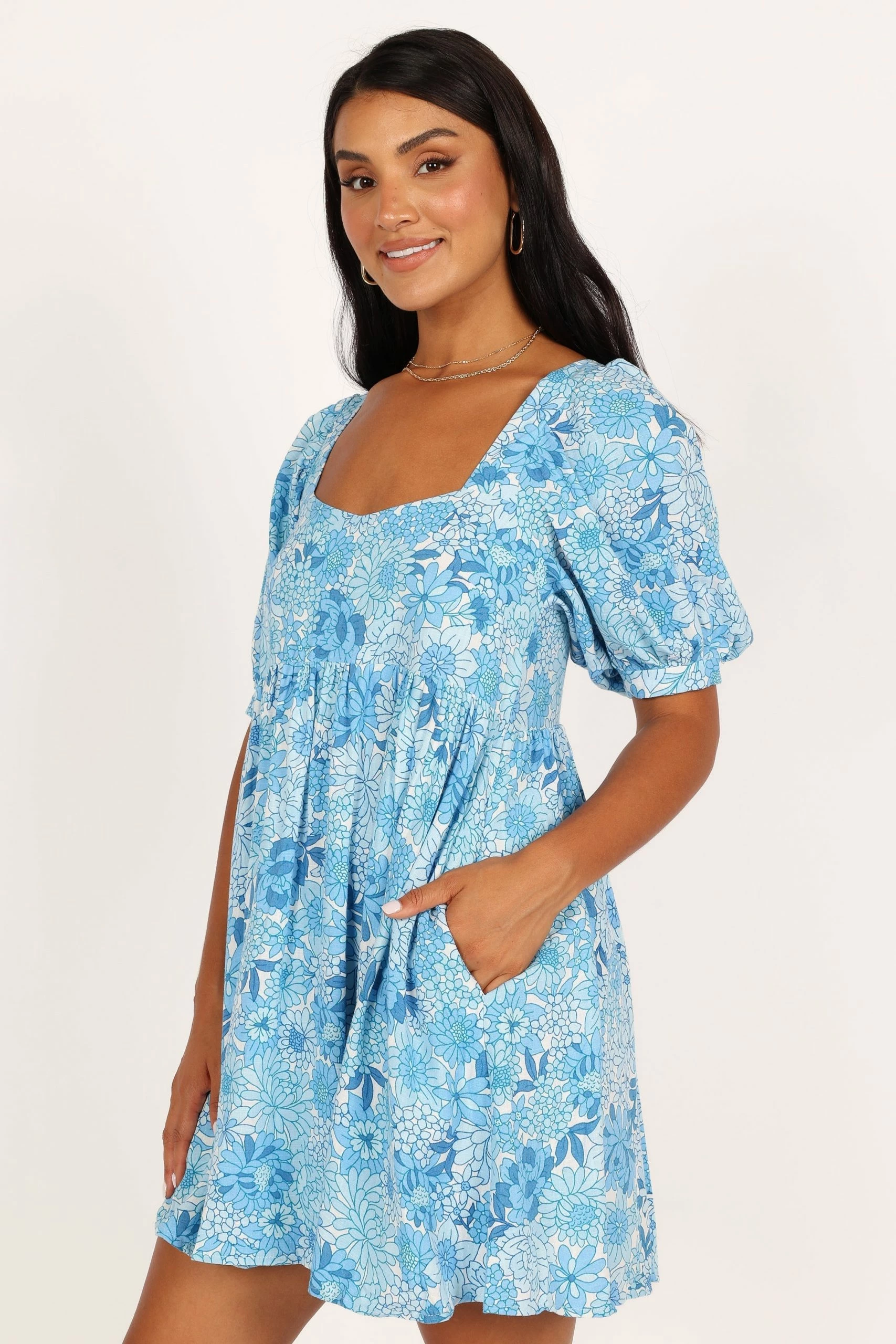 | DETAILS This babydoll mini dress is perfect for any occasion! With its square sweetheart neckline, short puff sleeves, open back with tie close and functional pockets, you’ll feel gorgeous and comfortable all day. Plus, the floral print design adds a fun feminine touch to your look.
