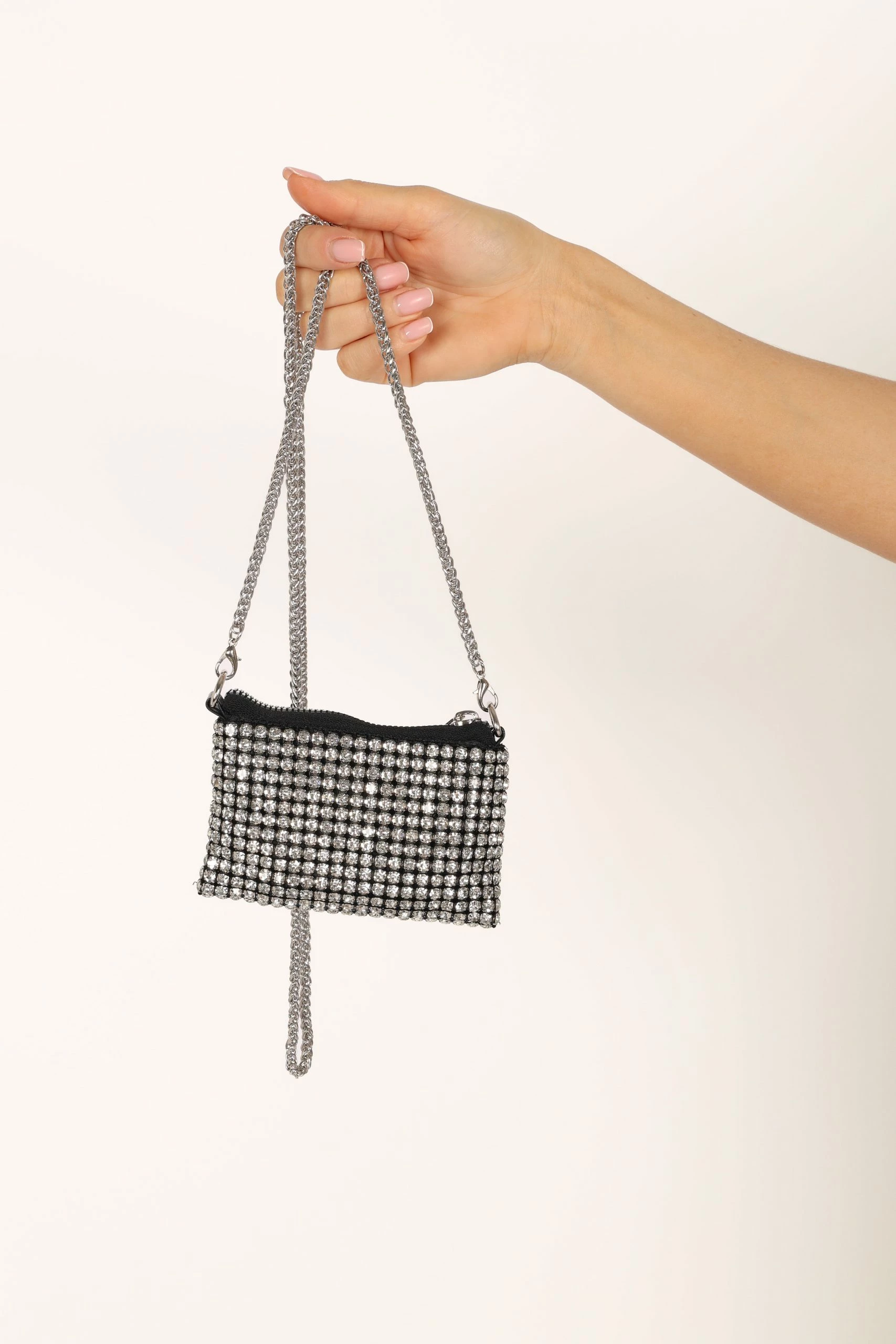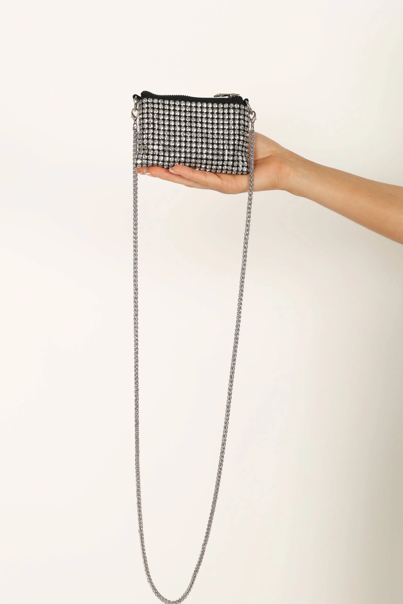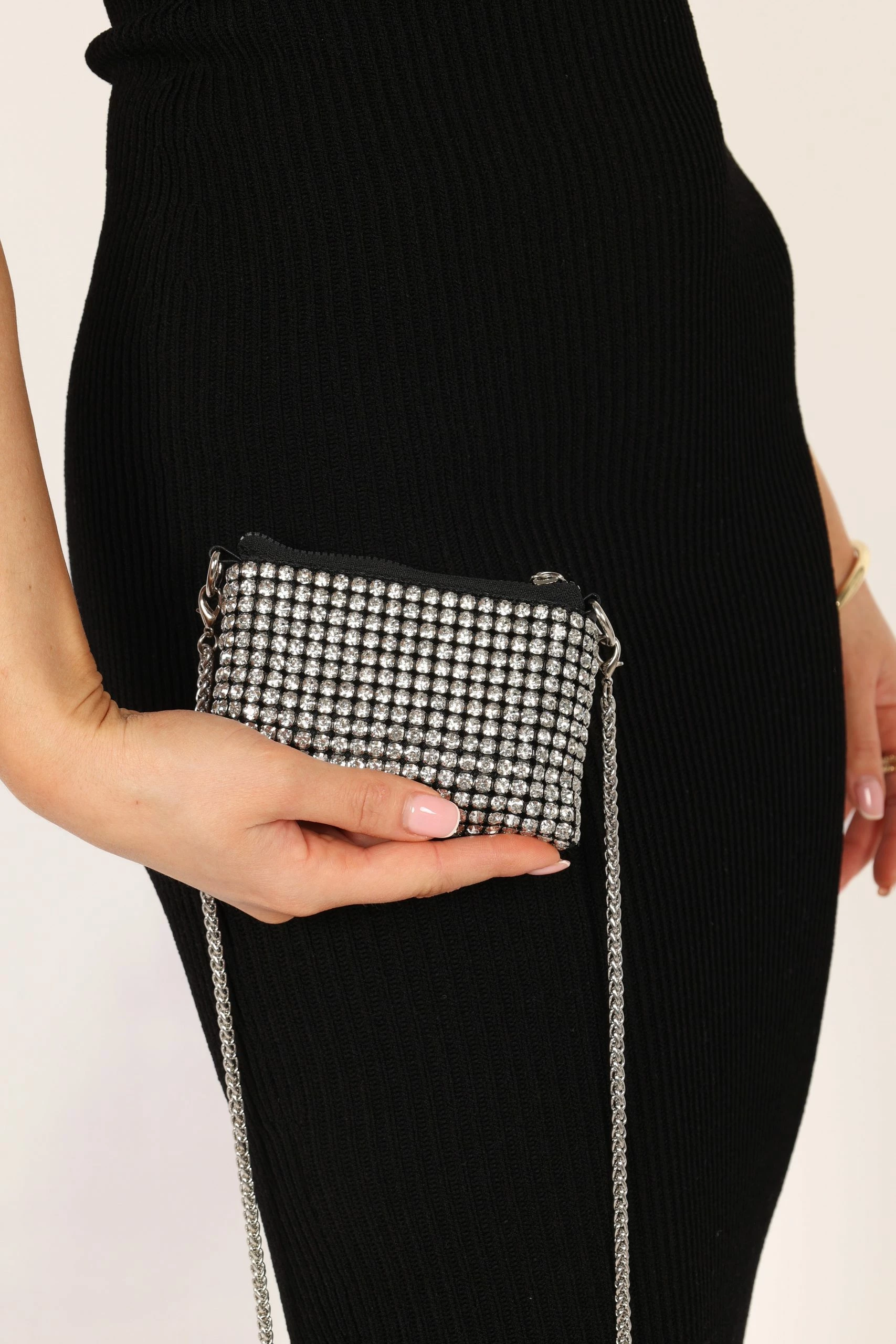 | DETAILS Make a statement on your next date night with this stunning Rhinestone Black Cross Body Bag. With its detachable non-adjustable cross body chain strap, you’ll feel comfortable and confident all night.