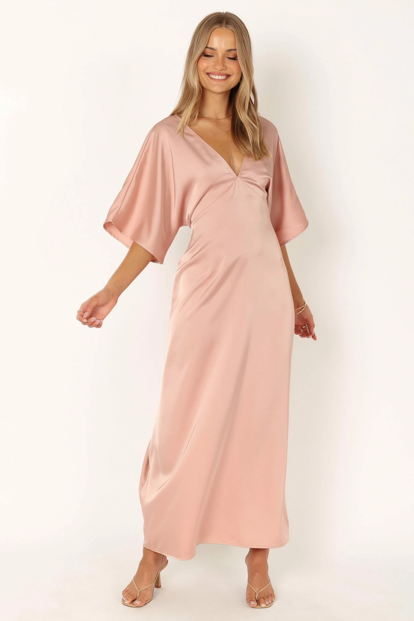 | DETAILS The perfect thing for your special occasion, this maxi dress will be sure to turn heads. Featuring a v neckline, short sleeves and back cut out detail for a contemporary touch, the attached waist tie adds an elegant finishing touch.