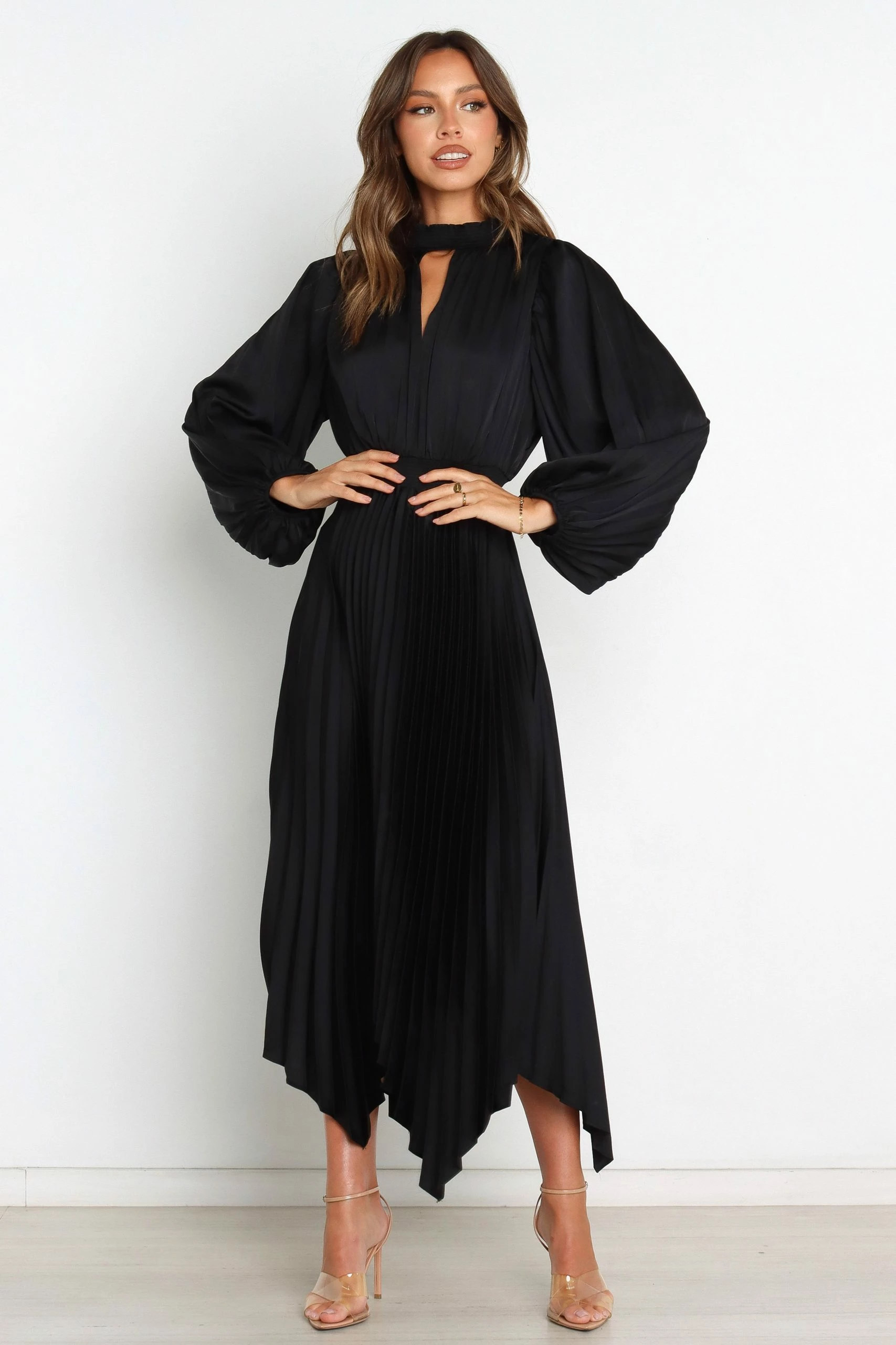 | DETAILS Elevate your cocktail-ready look with this gorgeous maxi dress! The shirred high neck features a button close and front and back cut out detail, giving it an elegant yet flirty feel.