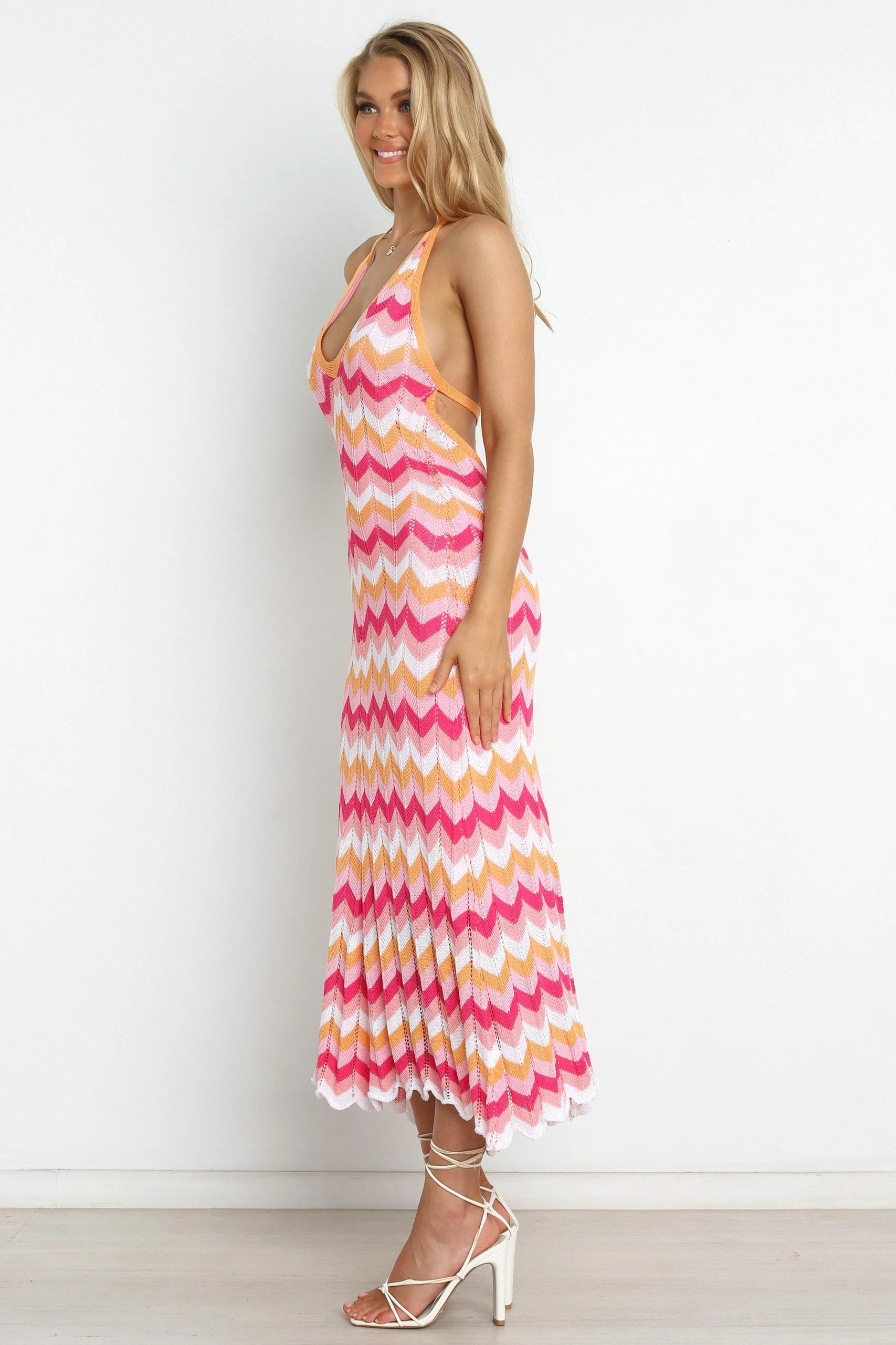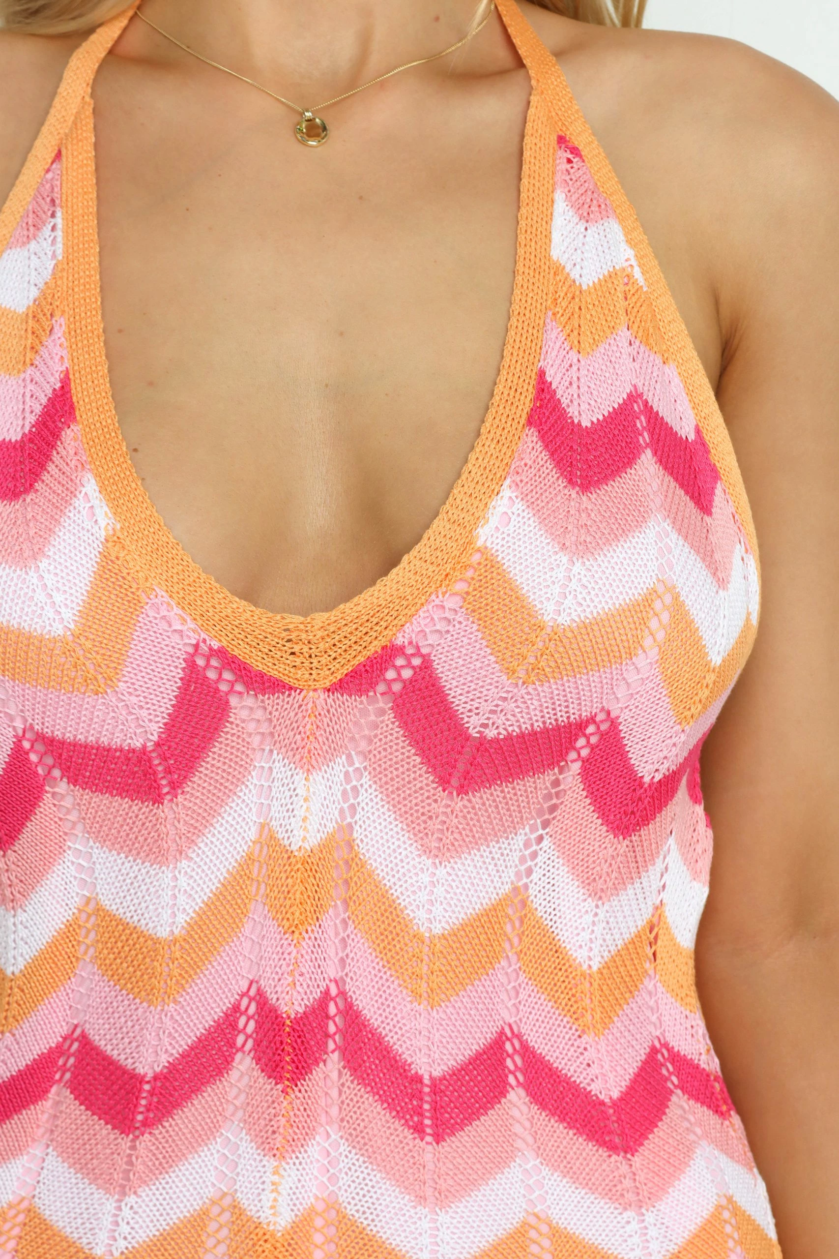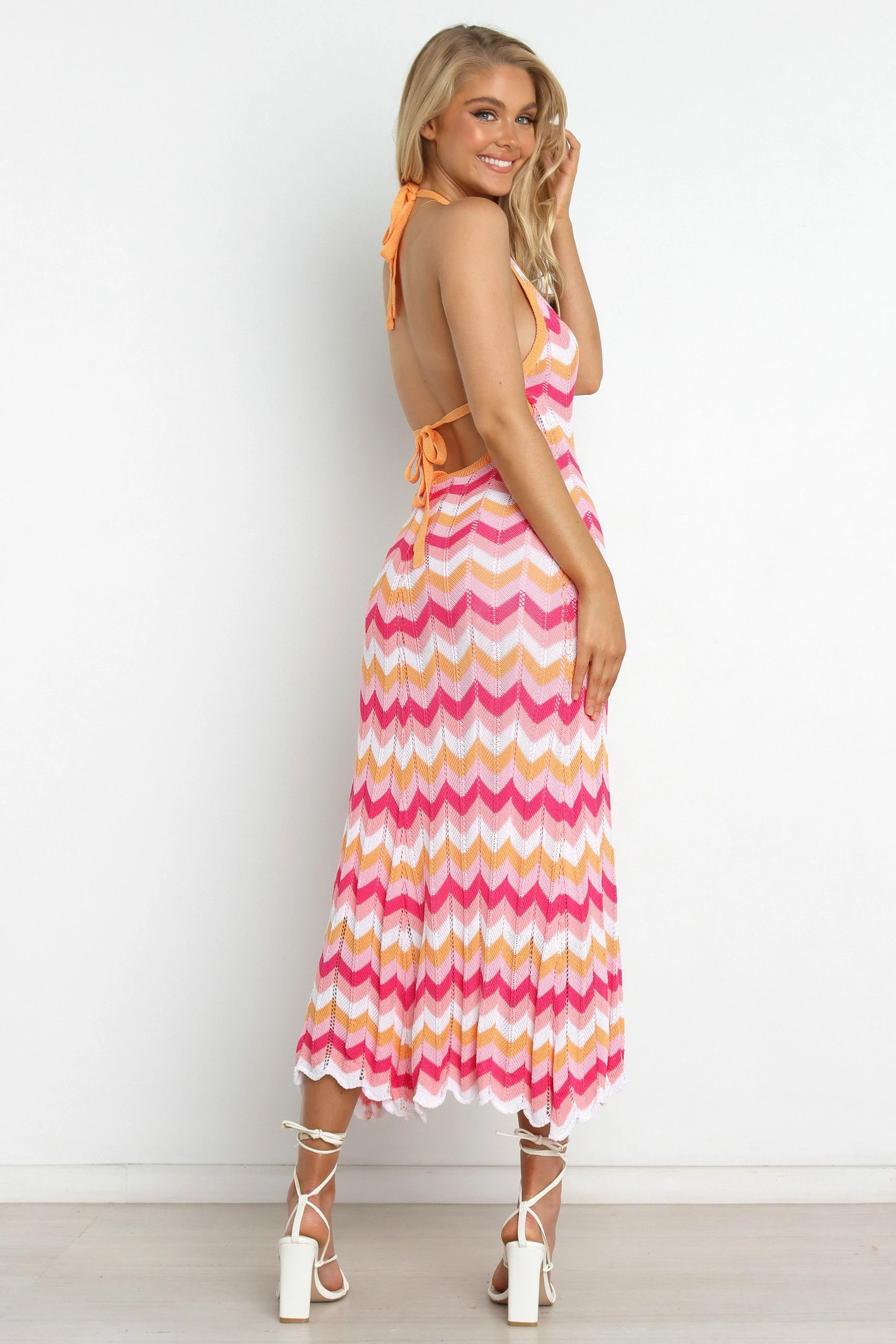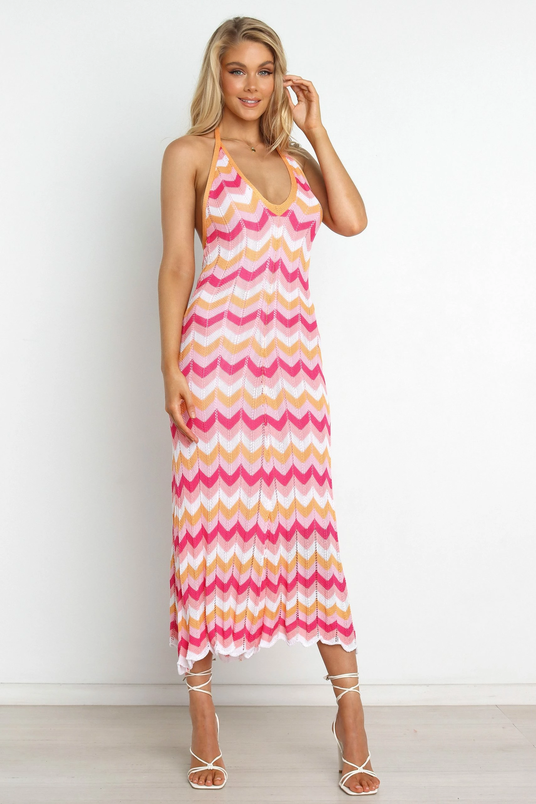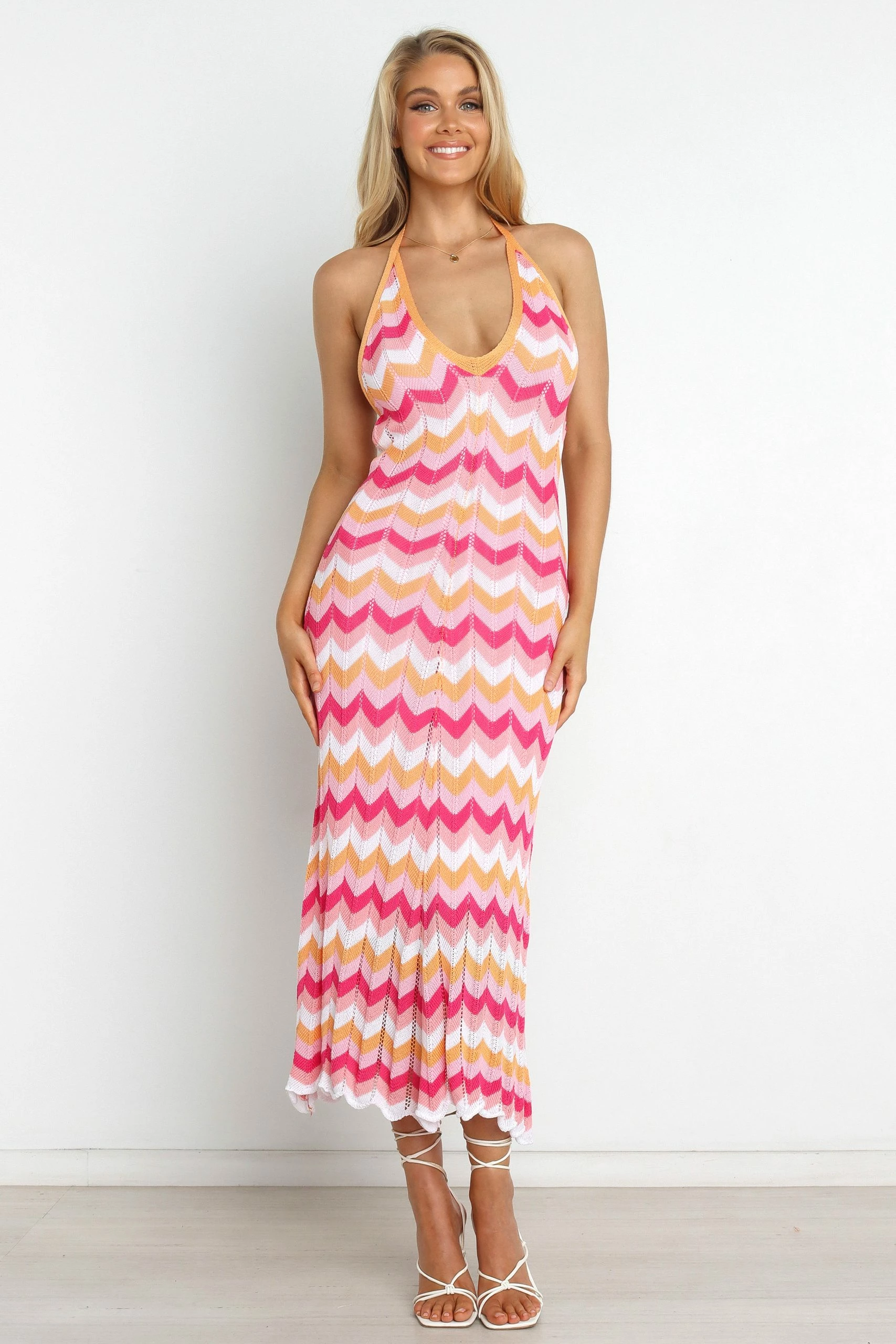 | DETAILS Step out in style with this fabulous crotchet style dress! Perfect for any summer occasion, this maxi length beauty features a v halter neckline with tie close and open back with tie close detail.
