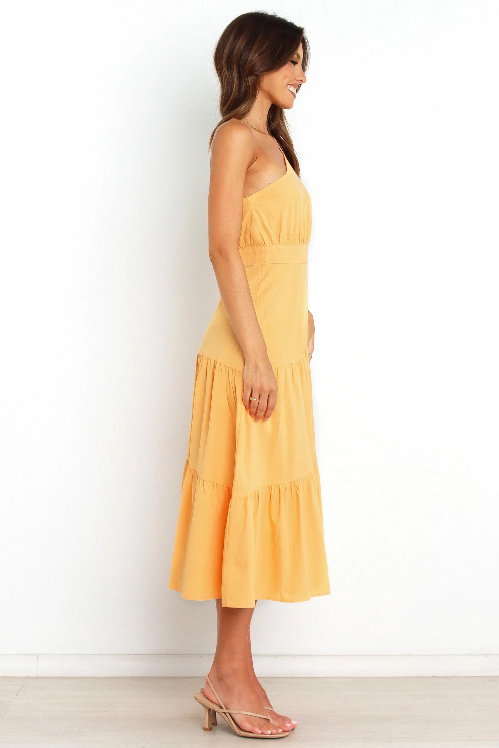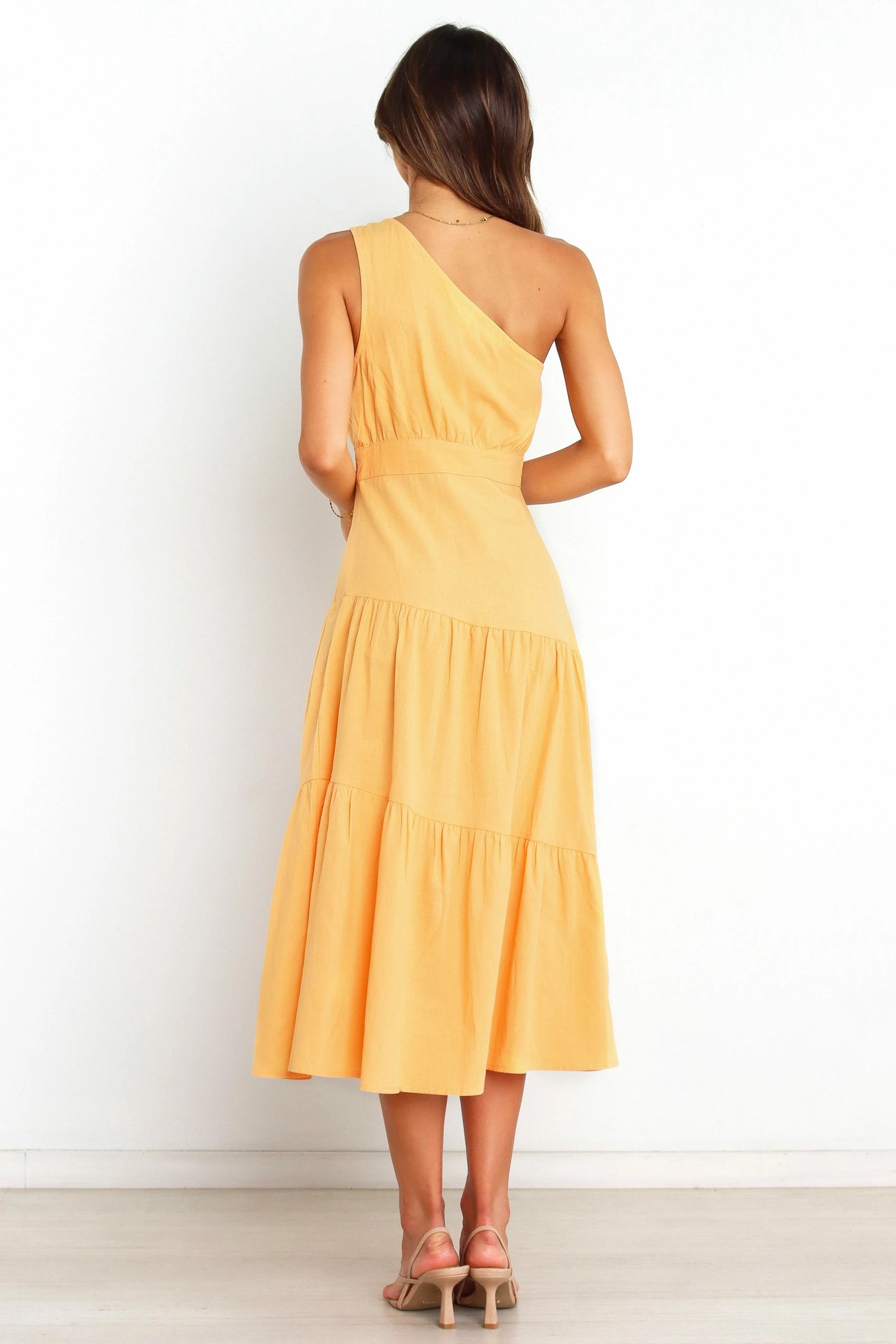 | DETAILS Glam up any occasion in this one-shoulder midi dress! The chic silhouette features an invisible side zip, flattering your figure and adding a touch of sophistication. The drop tier skirt design adds extra detail and movement.