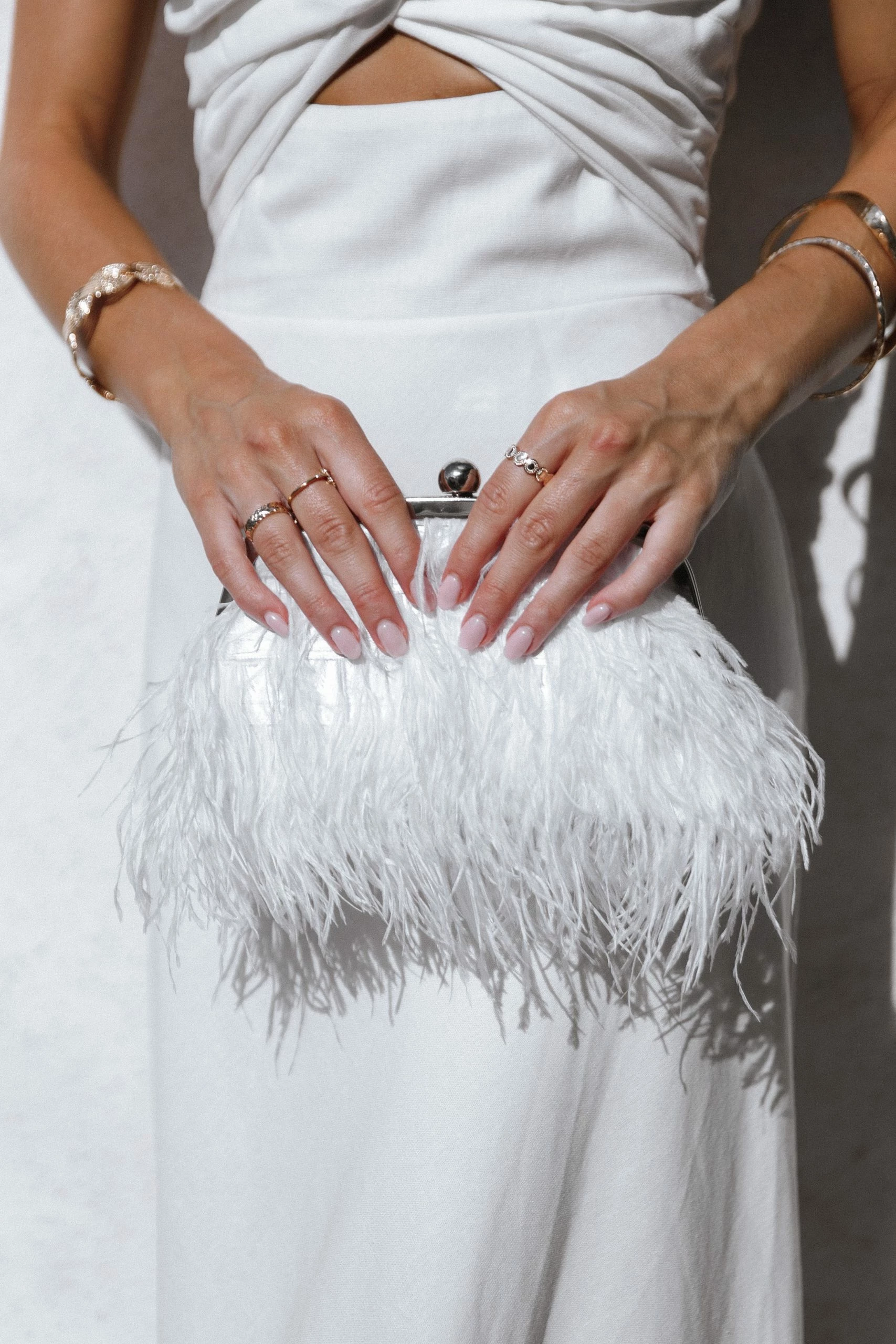 Evelyn Feather Bag – White
