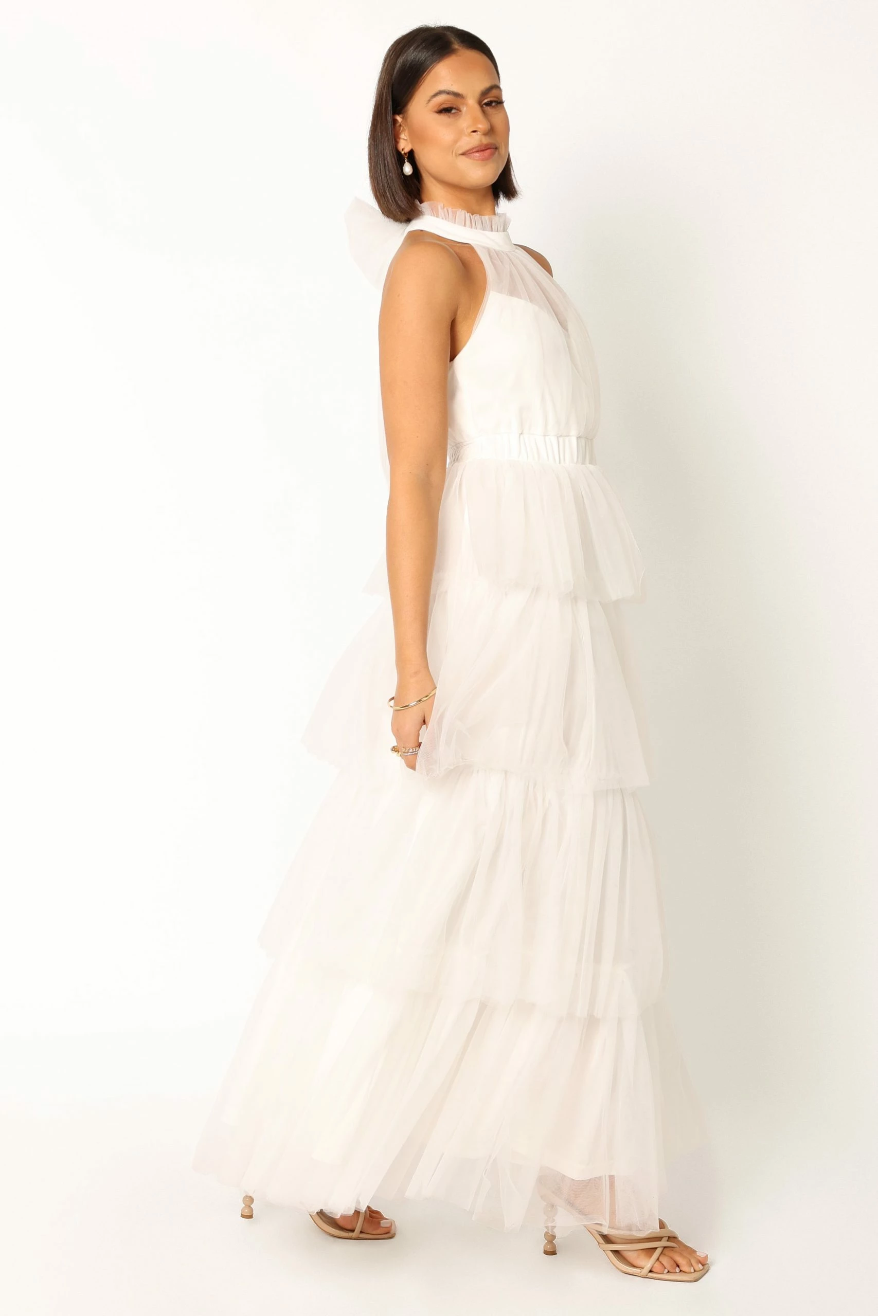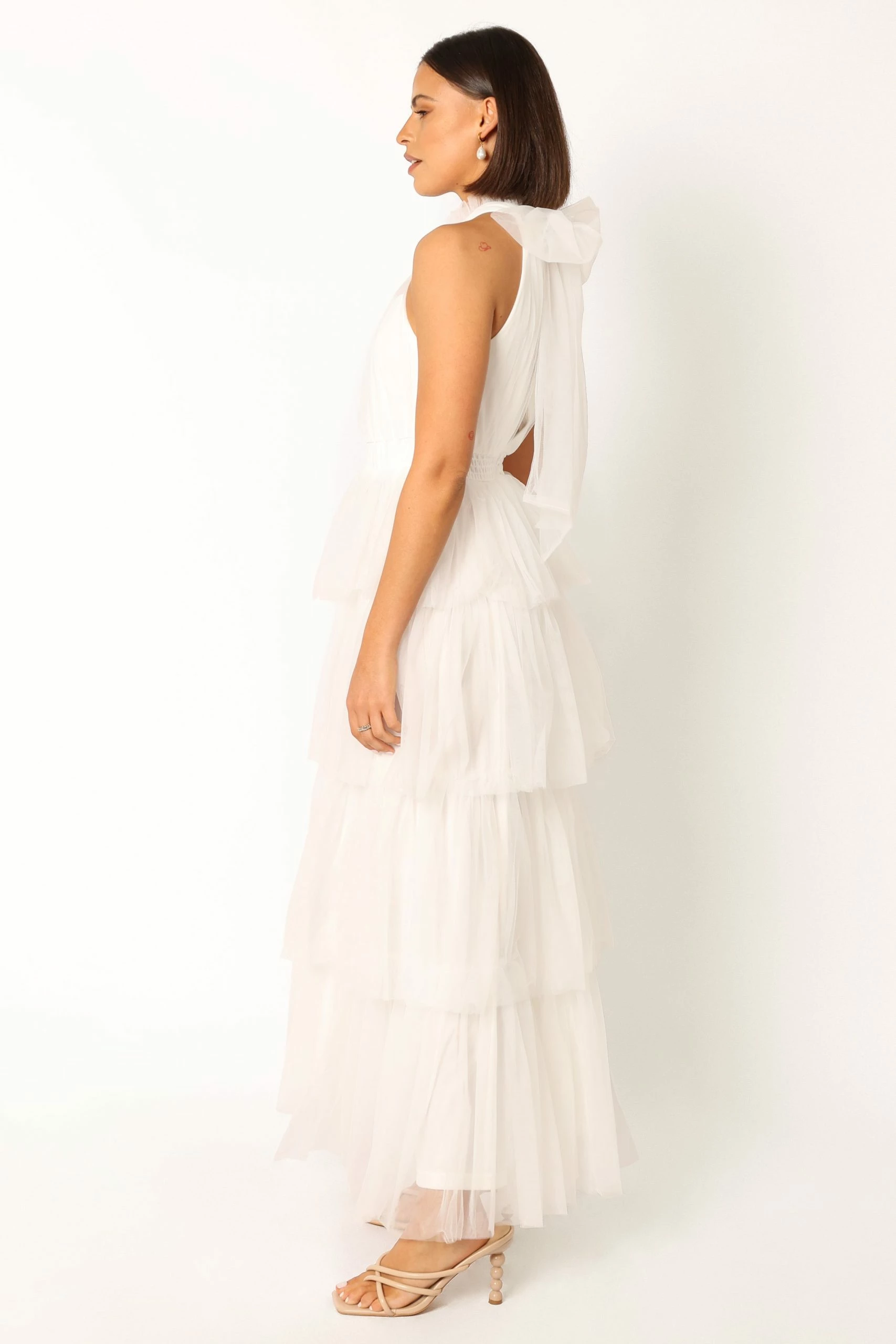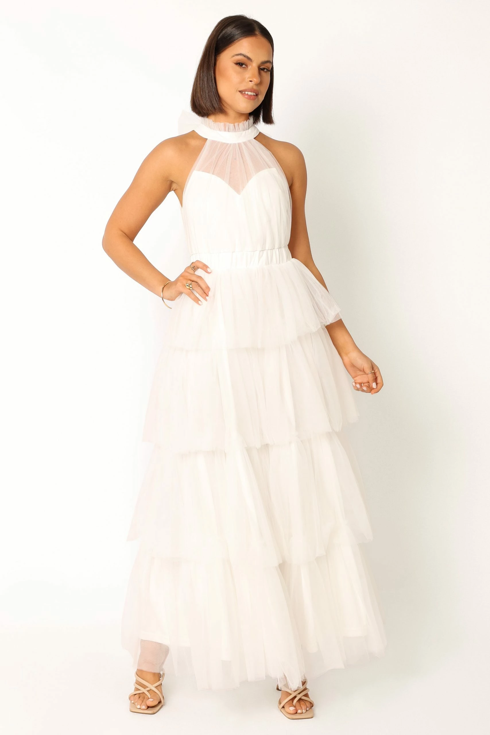 | DETAILS Create a show-stopping look with this gorgeous maxi dress. Featuring a halter neckline, sleeveless design and an open back with tie close, it’s the ultimate evening wear choice for any occasion.