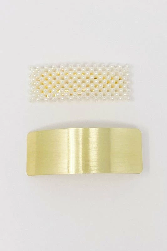 Hairclip Set - Gold/Pearl -Dress Shop petal and pup usa golden pearl hair barrette set gold os 33015410819249