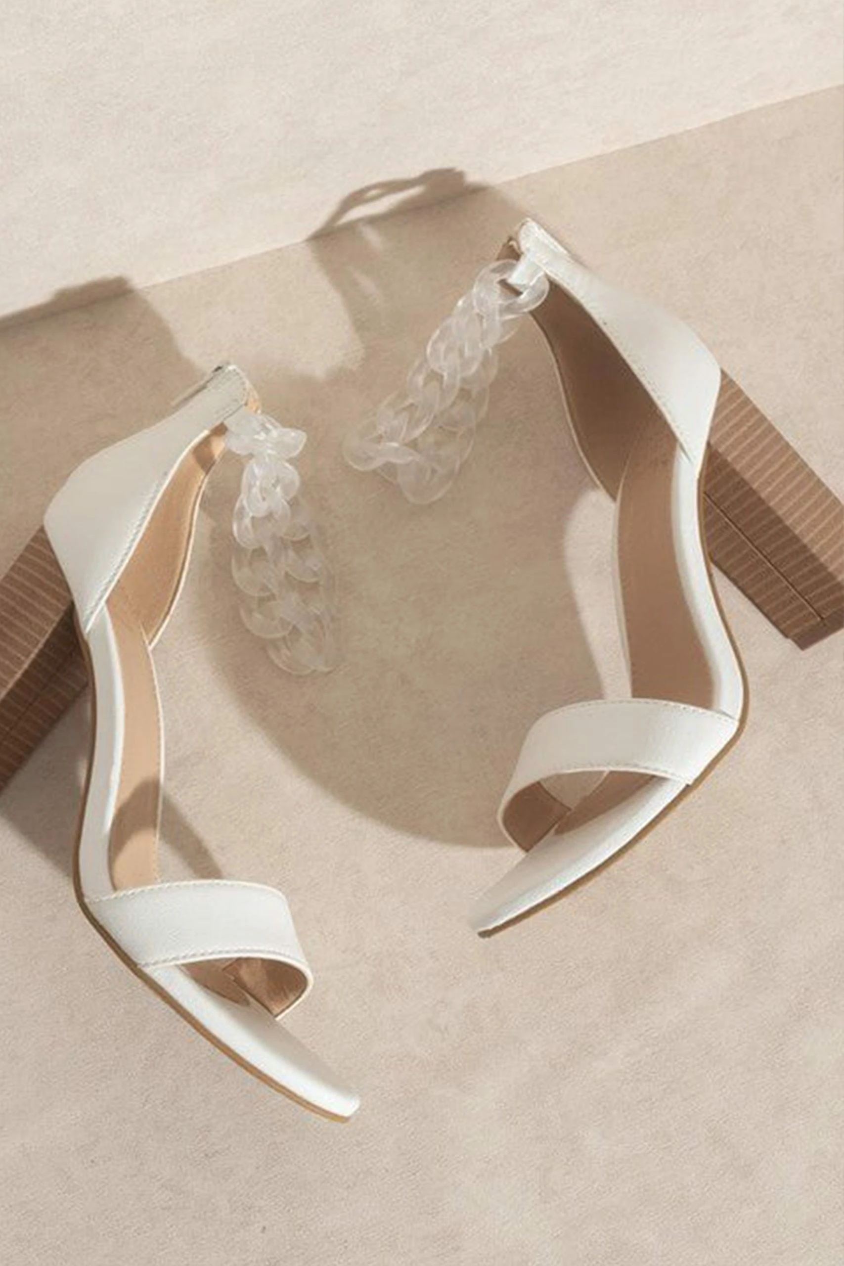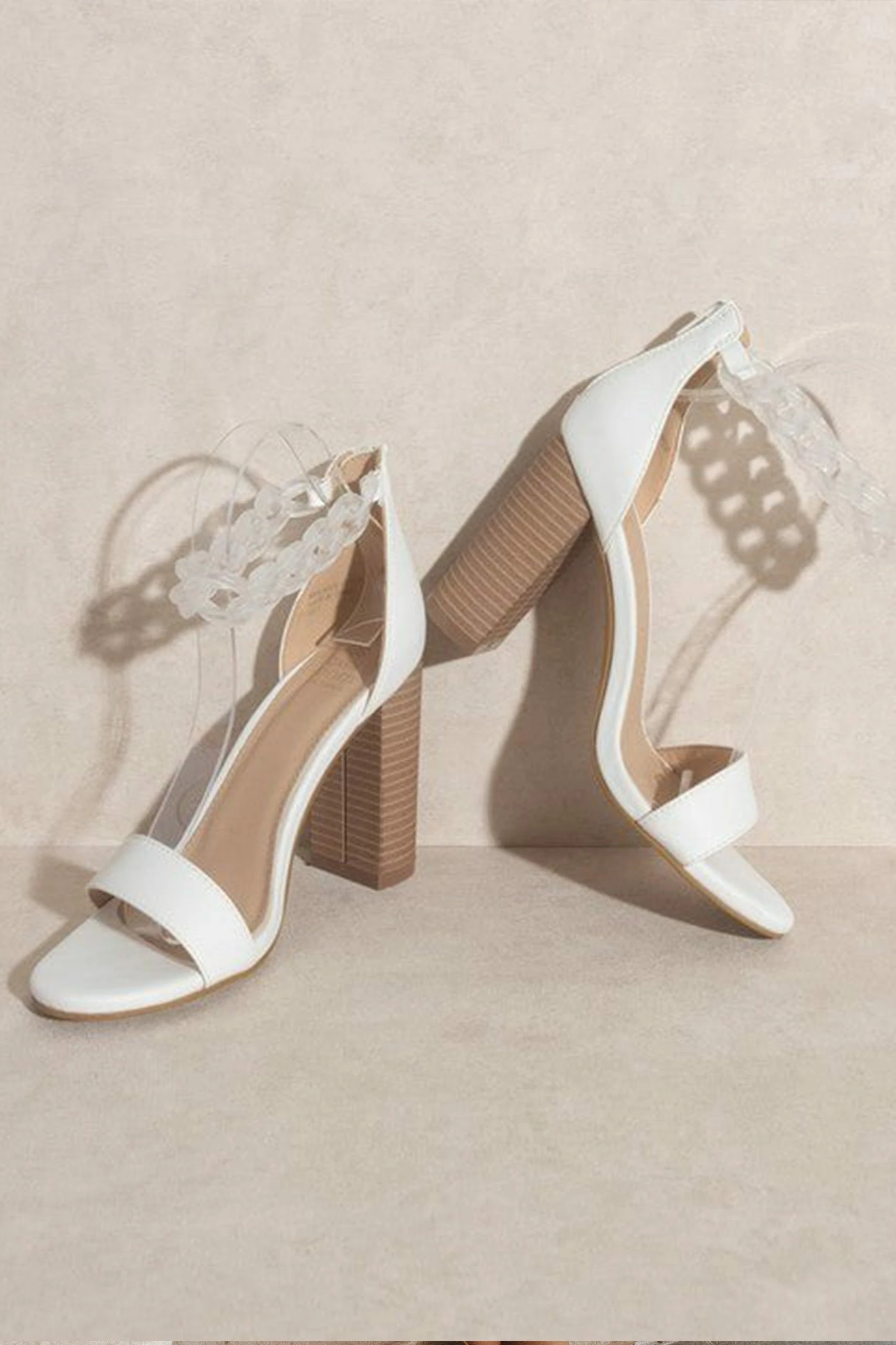 Be the first to review “Josie Ankle Chain Heel – White” Cancel reply