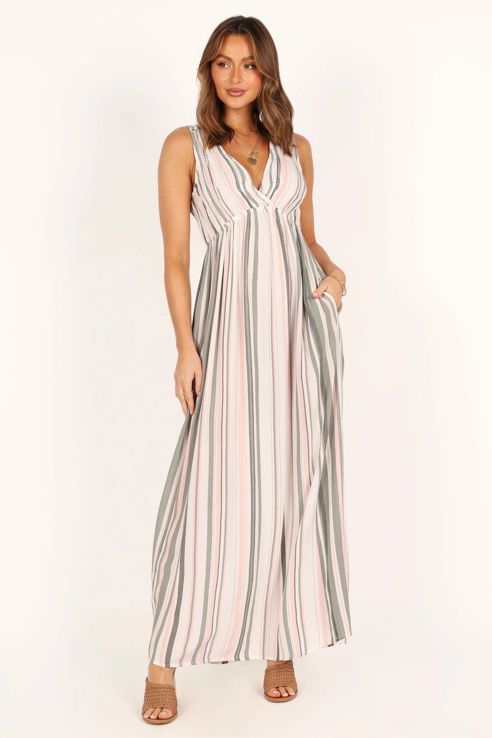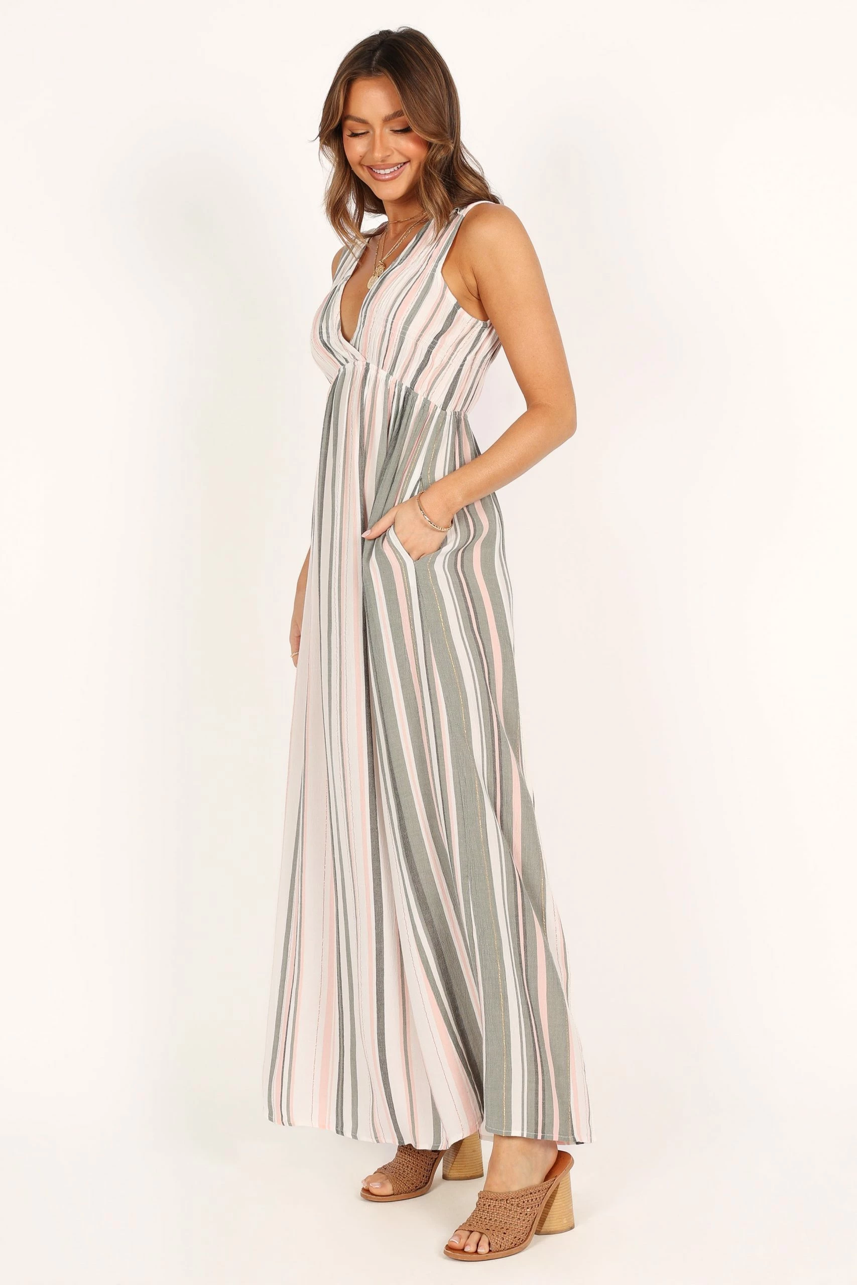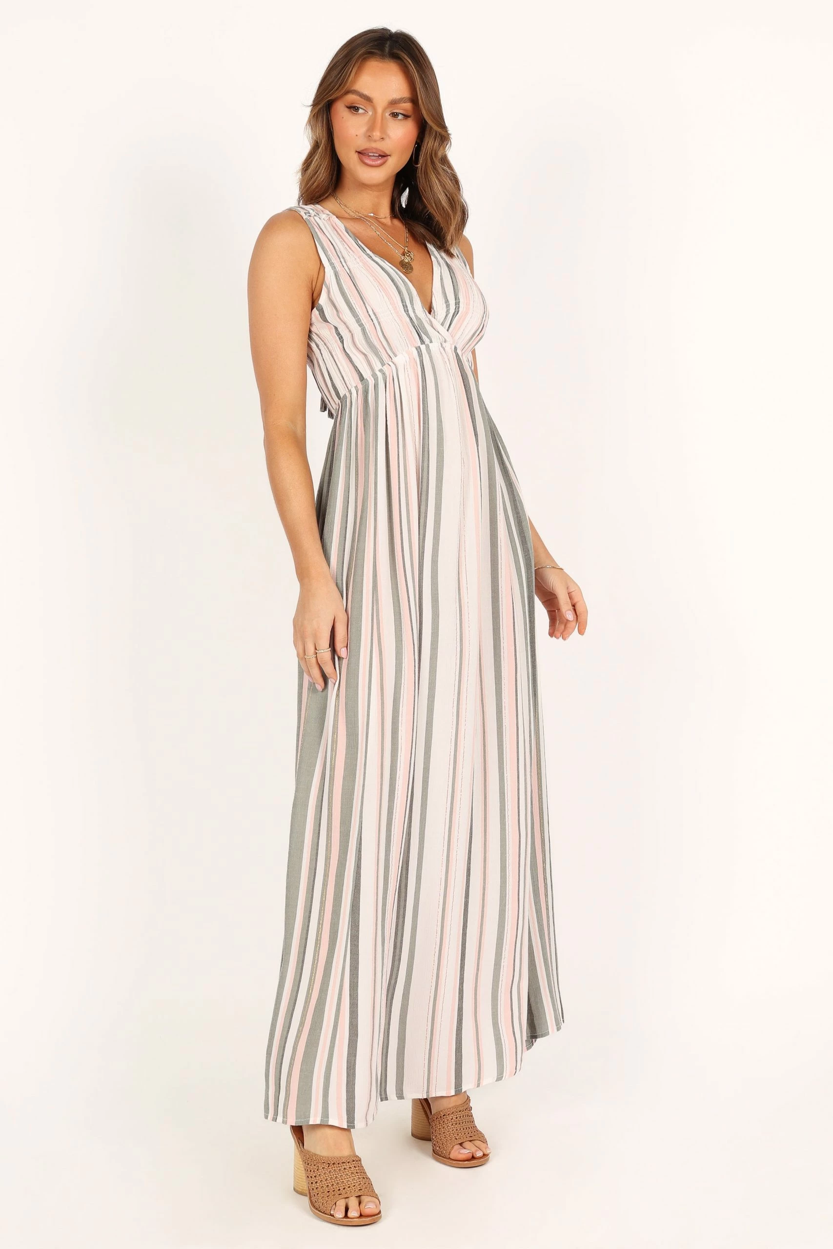 Judd V Neck Maxi Dress – Olive Stripe