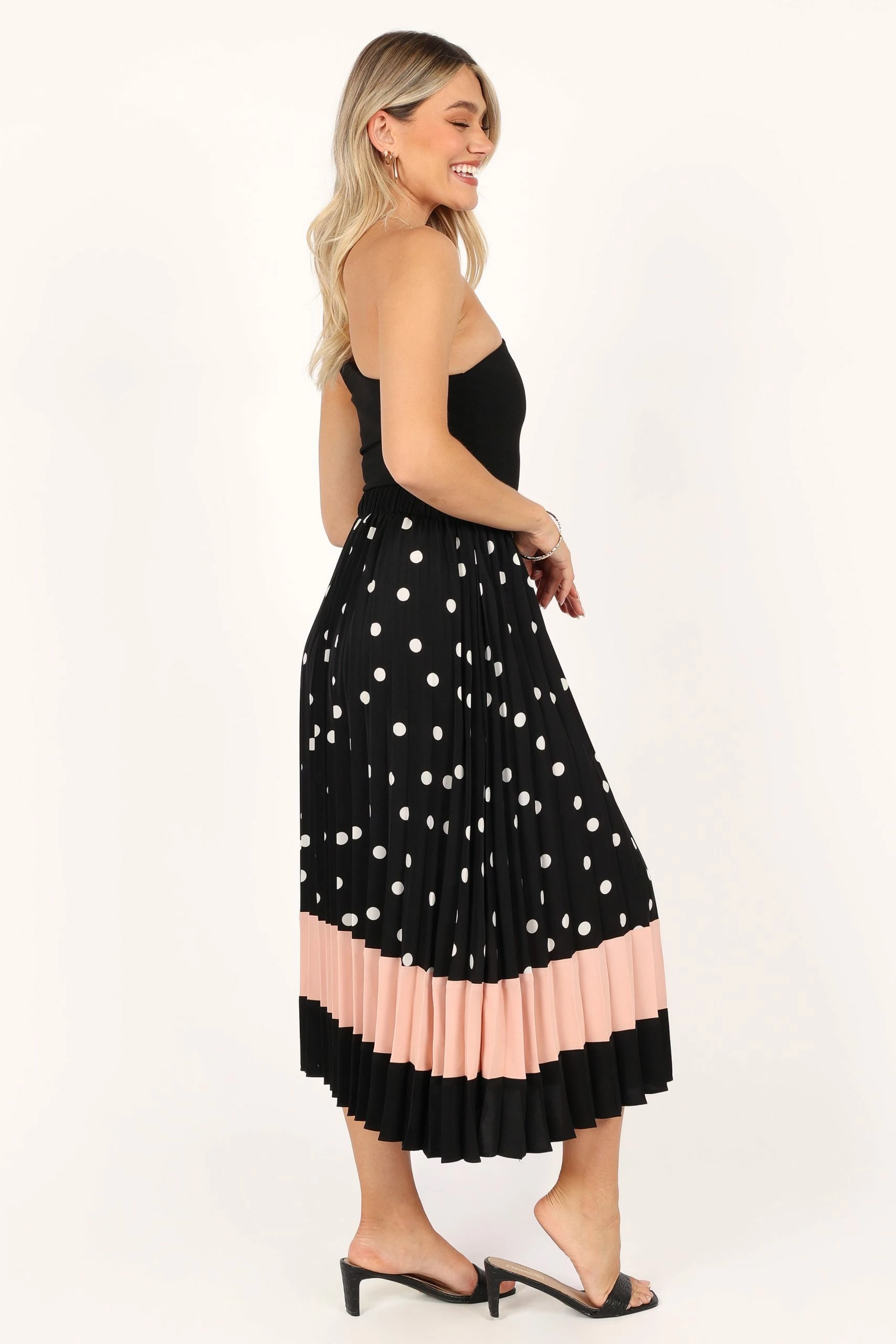| DETAILS Do you have a party coming up and looking for a fun outfit? Look no further than our midi length skirt with an elastic waistband! Not only is it comfortable and easy to wear, but its pleated detail gives it a stylish touch.
