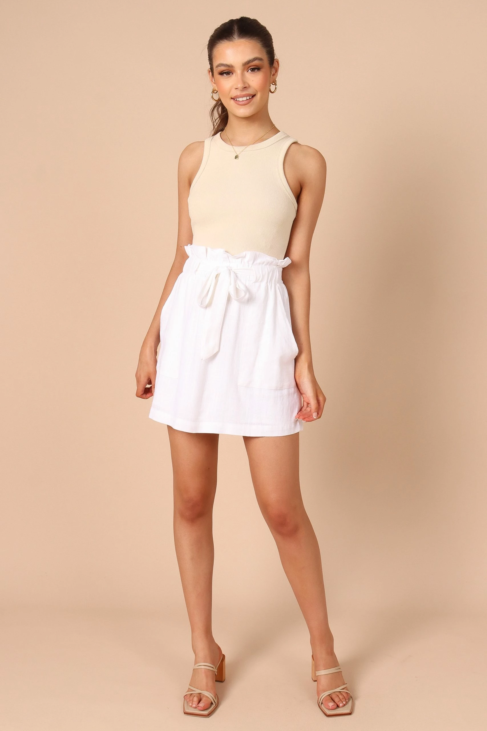 | DETAILS This linen blend mini skirt is one of the most easy to wear pieces this summer. Featuring an elasticised waistband with a ruffle detail and functional pockets, you’ll be able to move around in utmost comfort.