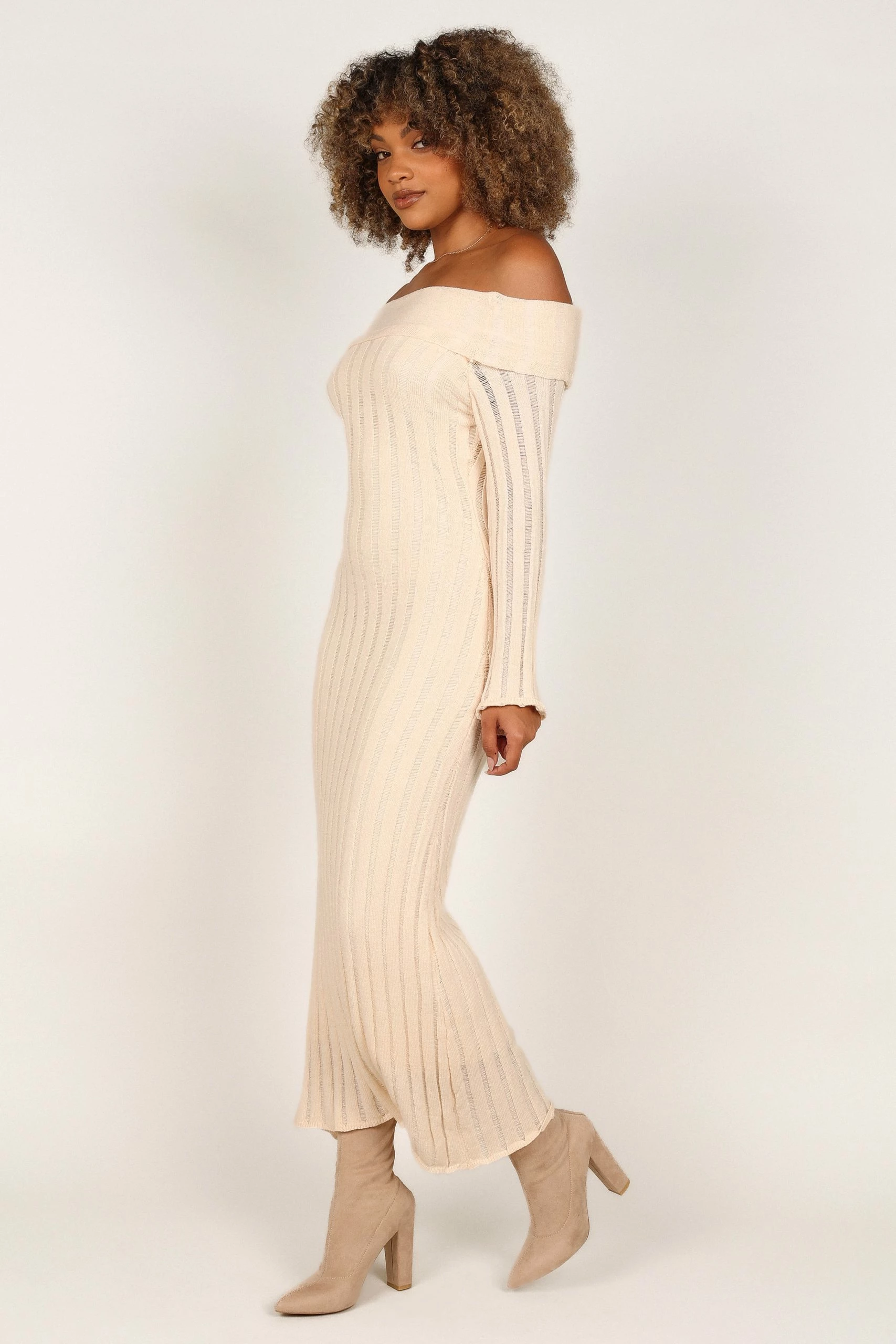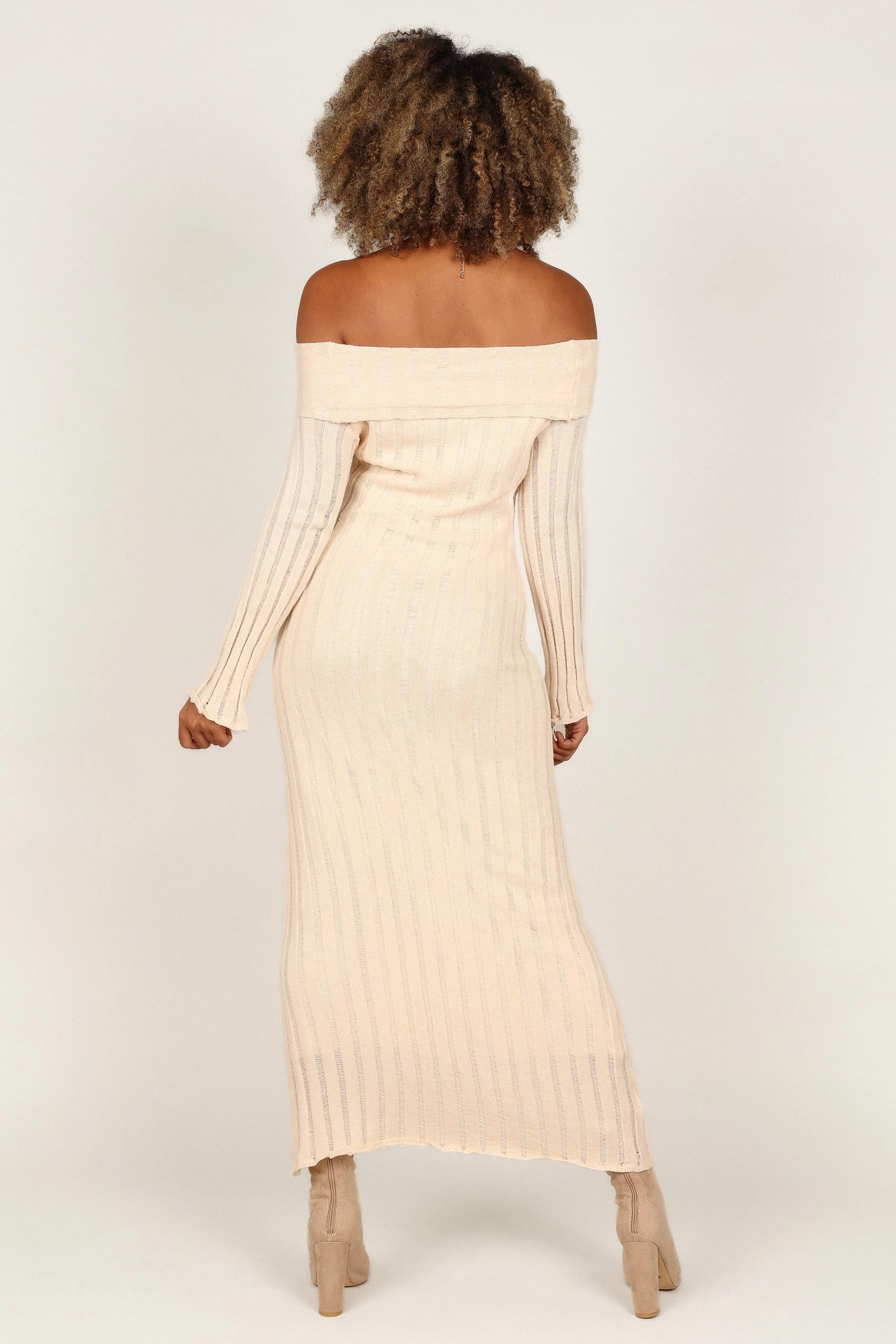 | DETAILS Make a statement at your next event in this stunning off-shoulder maxi dress! The long sleeves provide a sophisticated touch, while the delicate knit material ensures maximum comfort all night long.