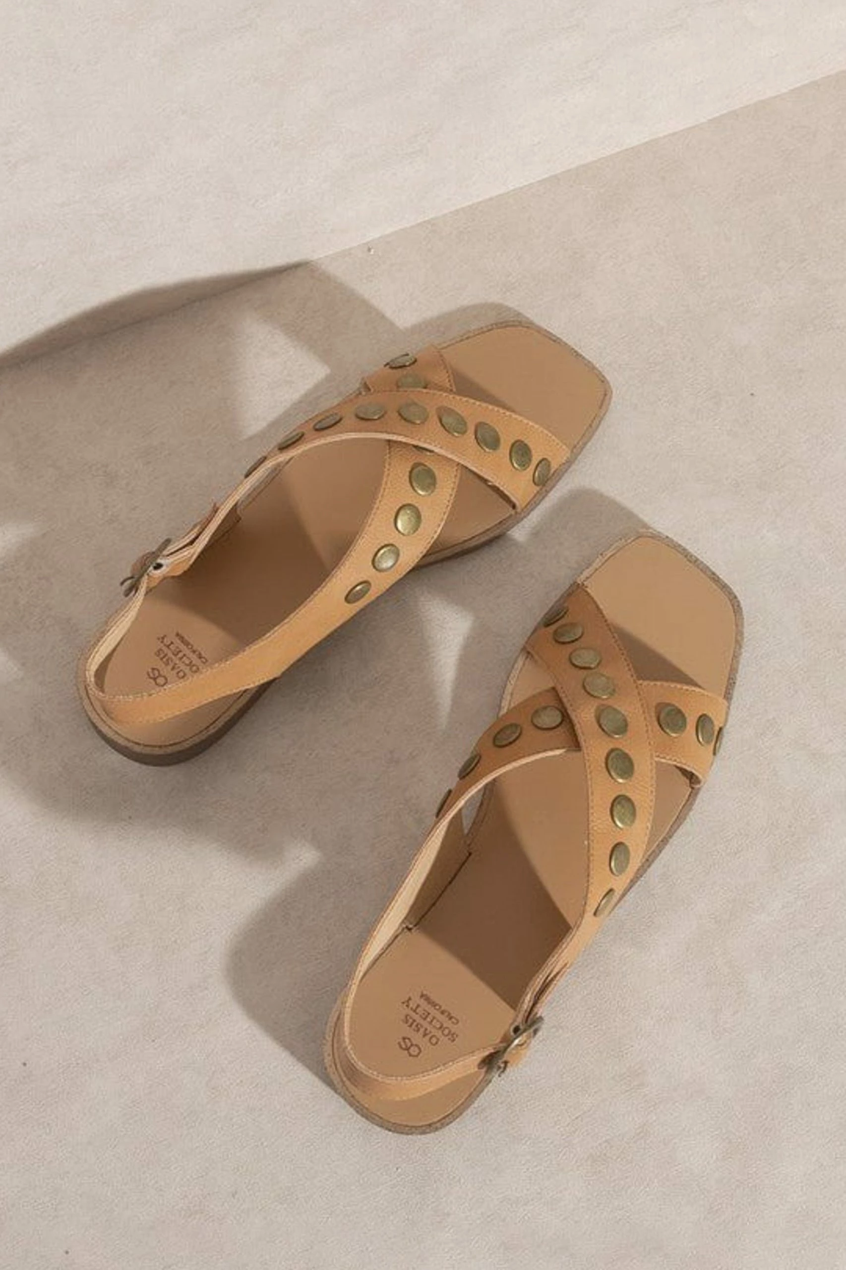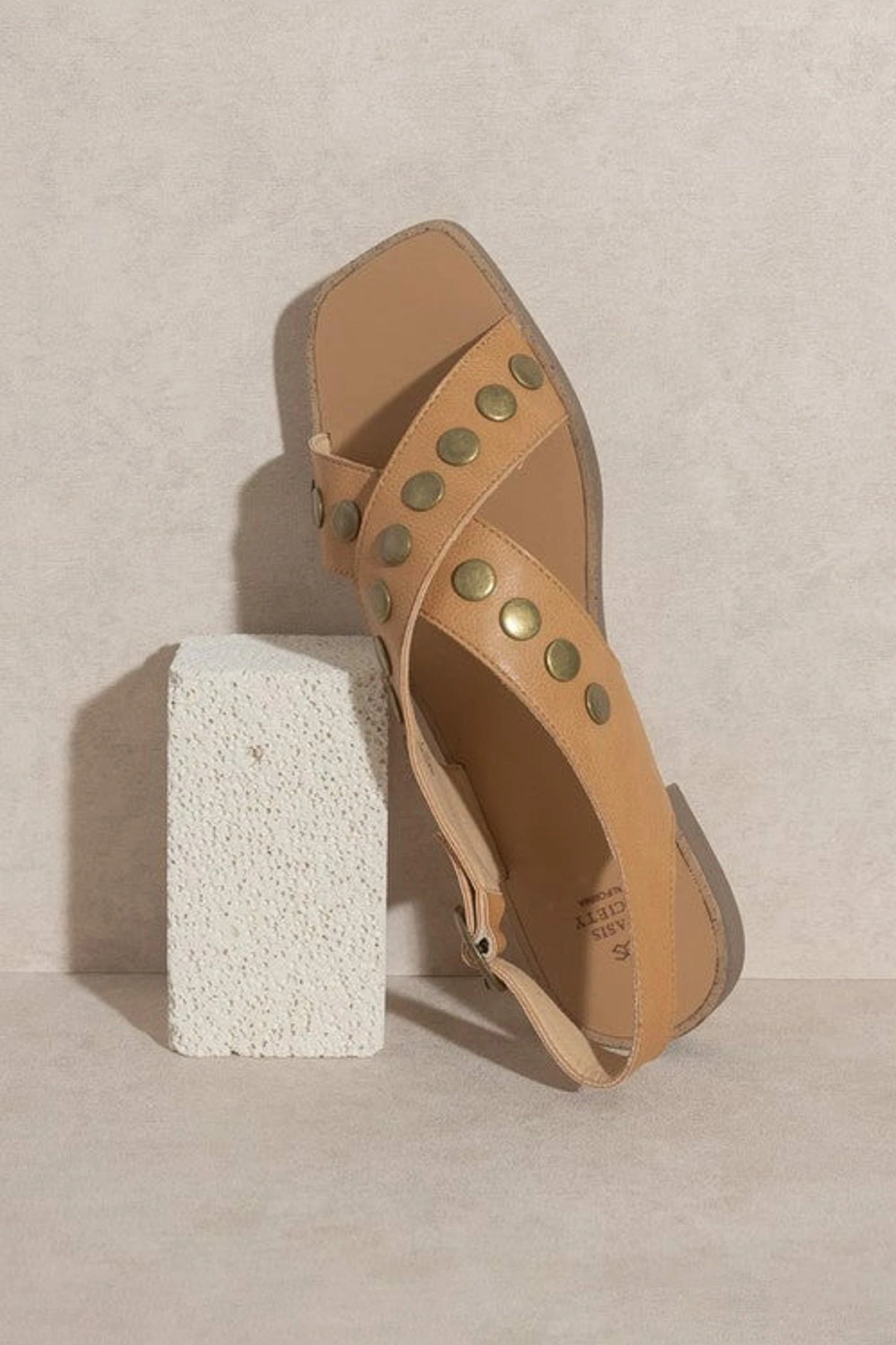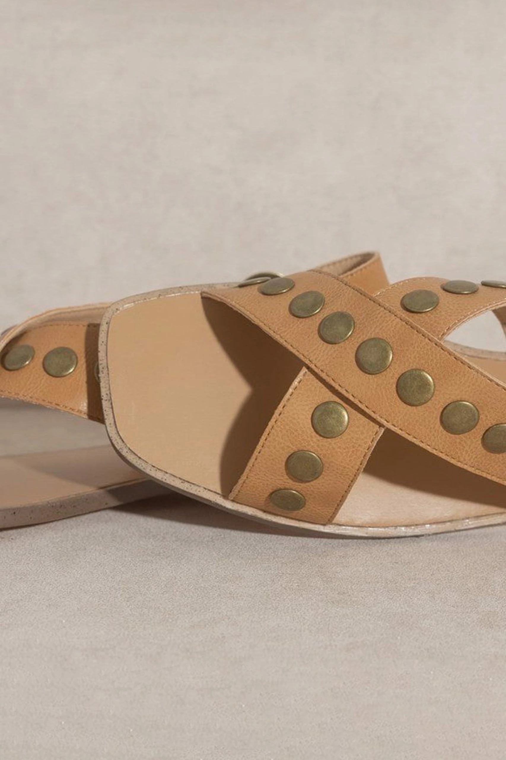 Kylie Studded Cross Band Sandal – Tan