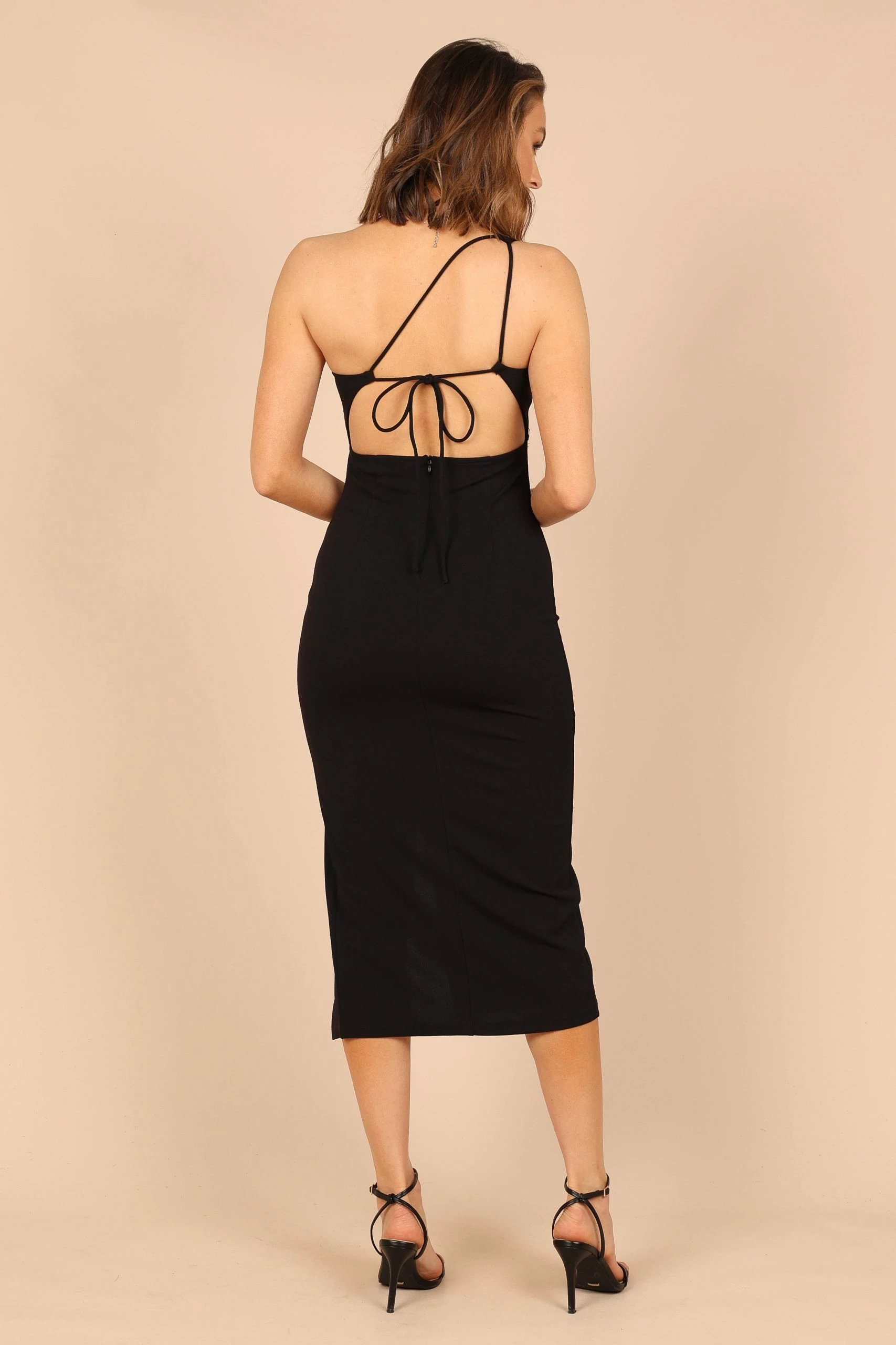 | DETAILS This one shoulder midi dress is a must-have for any special occasion! The asymmetrical neckline and tie close shoulder strap give this dress an extra touch of style, while the front twist knot detail on the bust adds a playful vibe to any look.