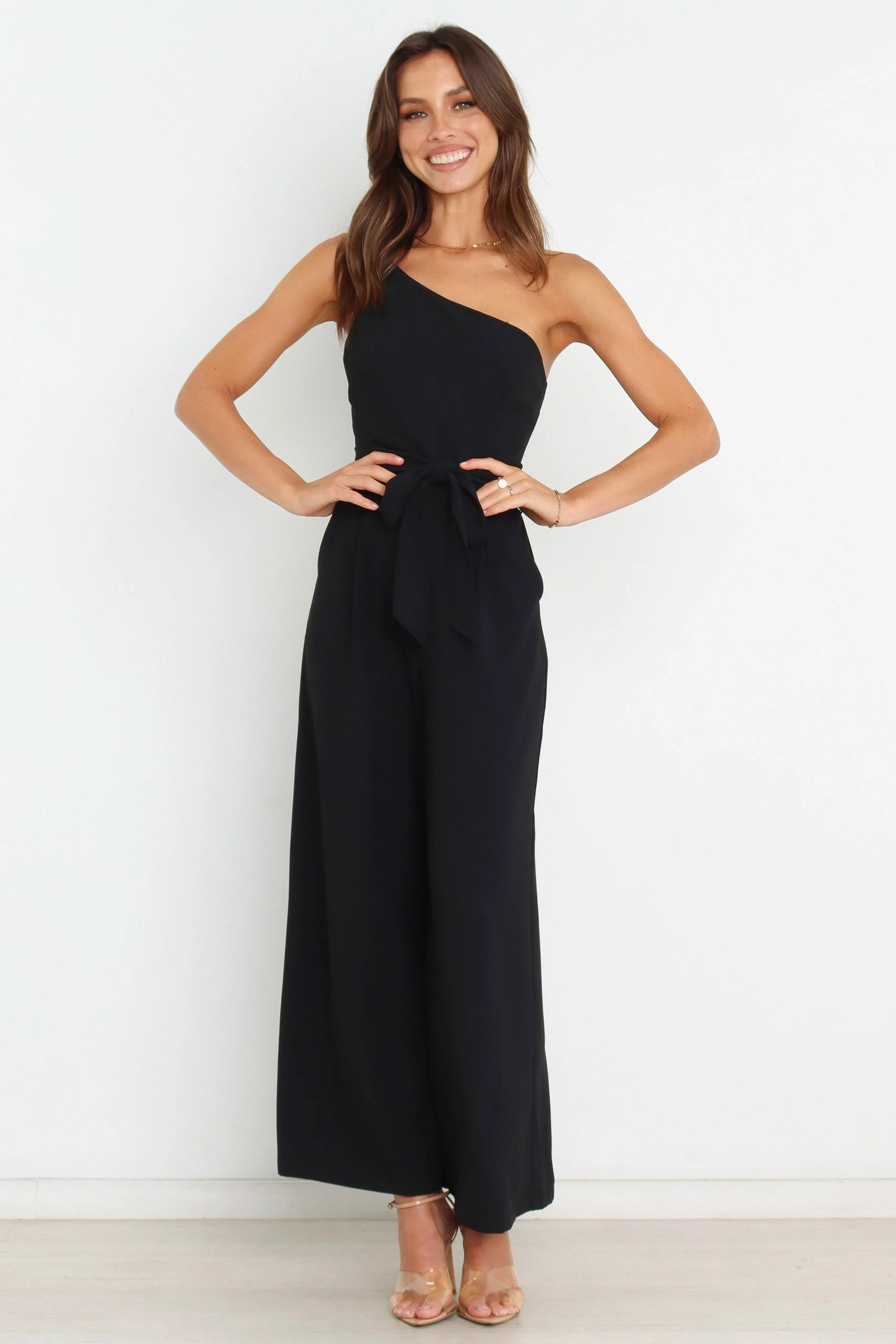 | DETAILS This one shoulder jumpsuit is a classic wardrobe staple perfect for any occasion. Featuring an adjustable thin strap and back invisible zip, you’ll be sure to leave a lasting impression! The jumpsuit also includes belt loops and a detachable waist tie for added shape and style.