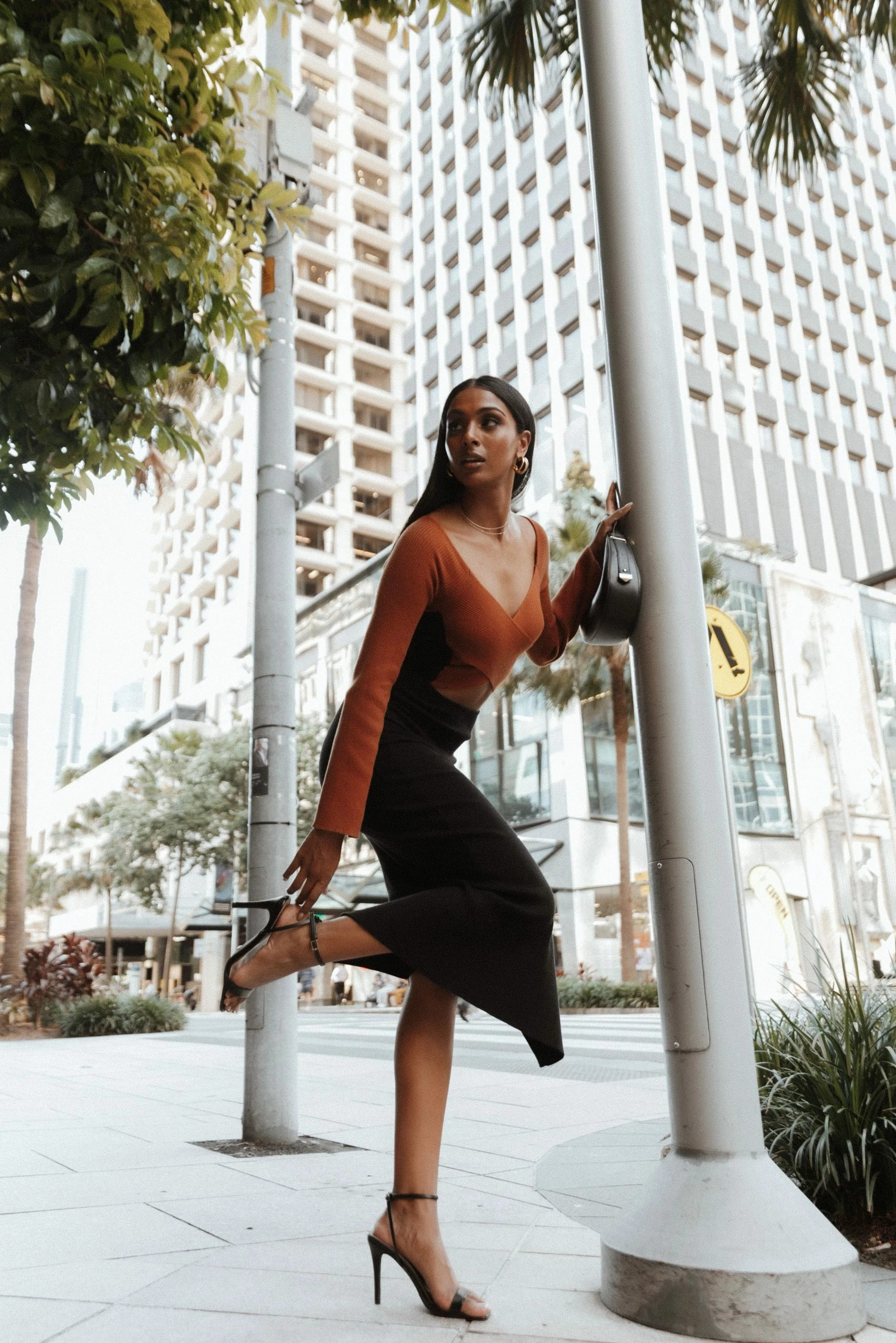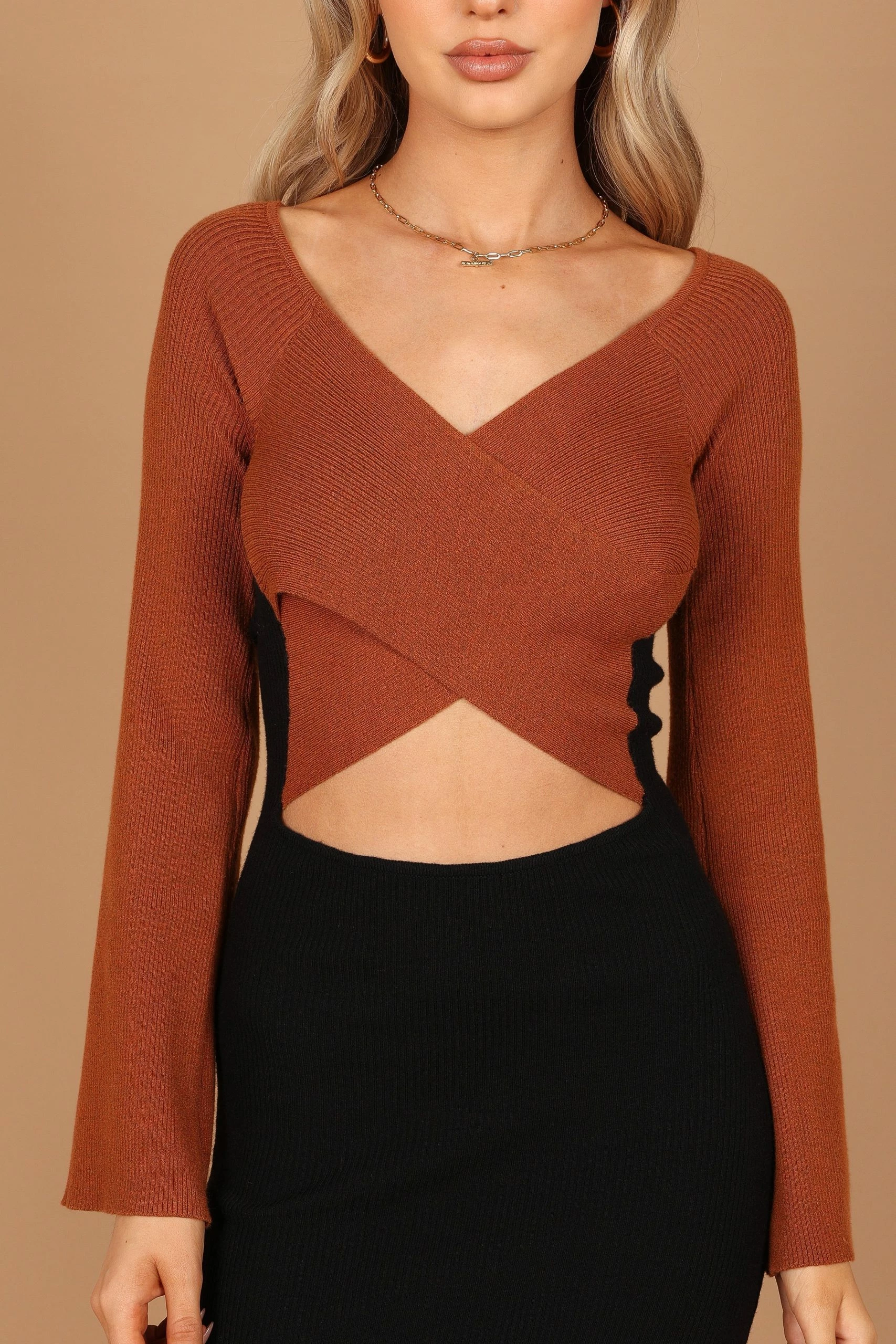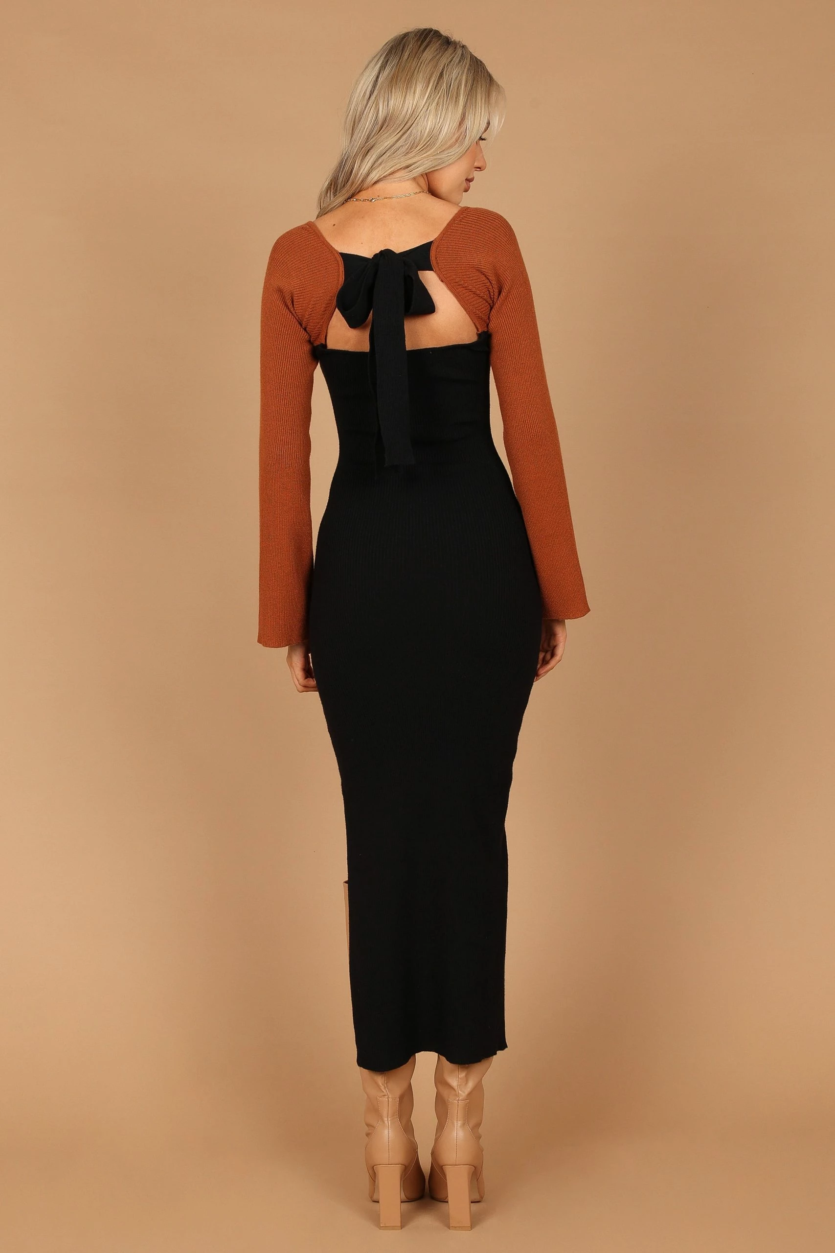 Luxxe Long Sleeve Maxi Knit Dress – Black/Tan