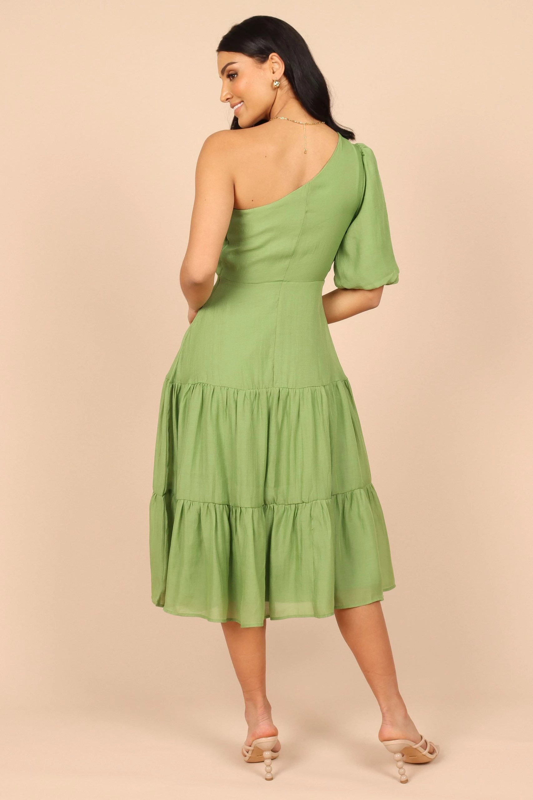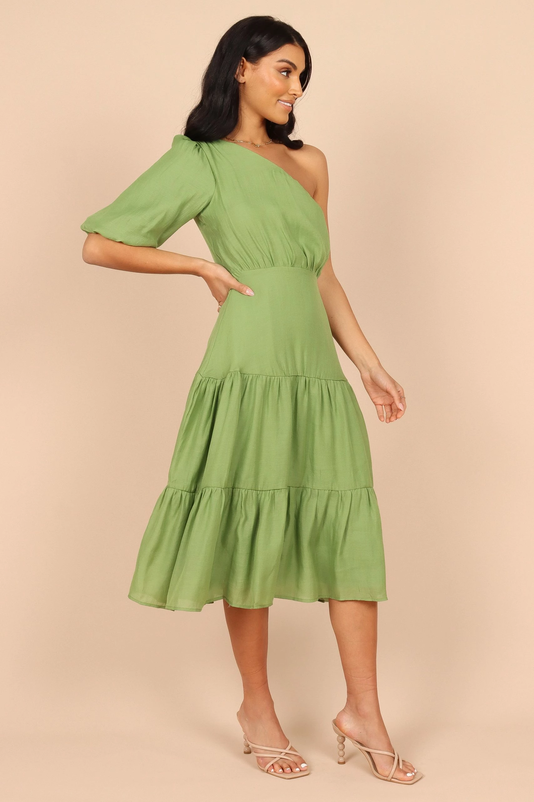 Milla One Shoulder Tiered Midi Dress – Green