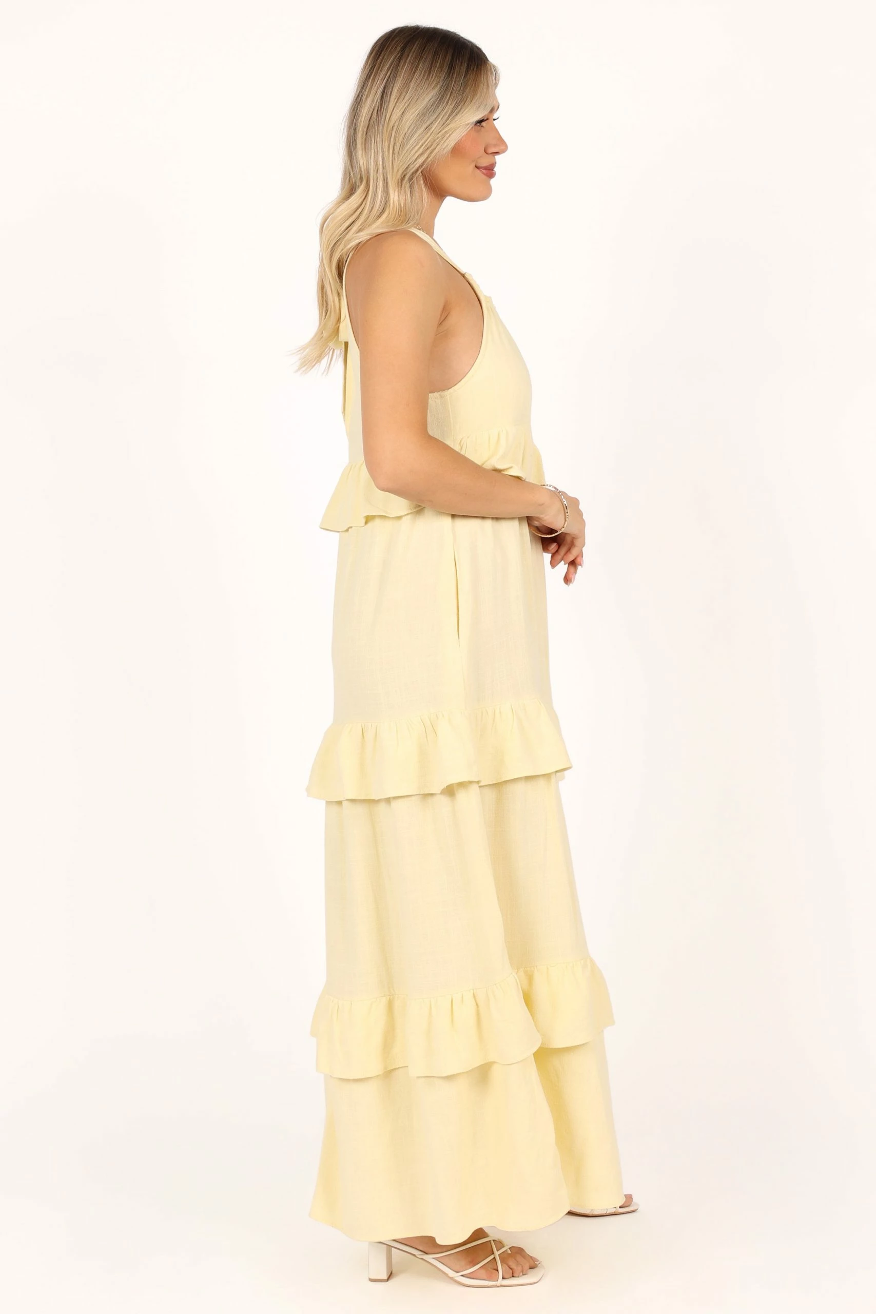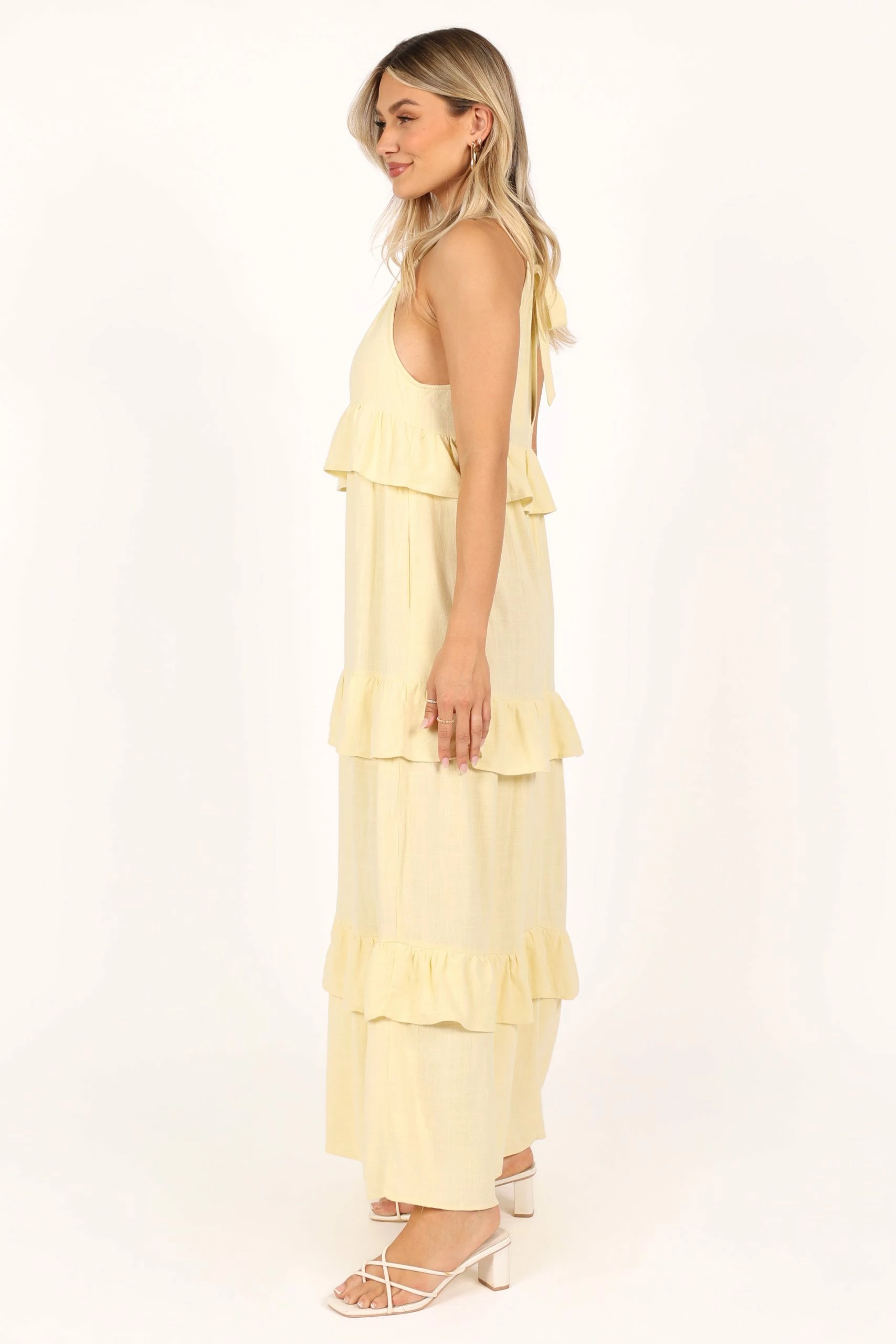 | DETAILS When you’re looking for a maxi dress that perfectly captures your feminine style, this beauty is the one! Featuring an elasticised neckline with frill trim, a halterneck neckline with tie back and open back detail – it’s all the details that make it so special.
