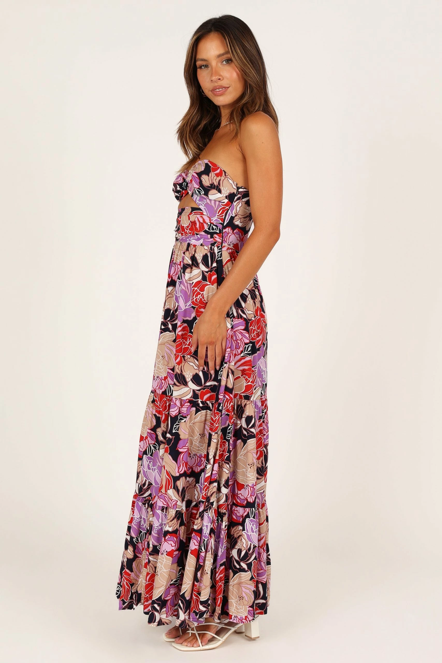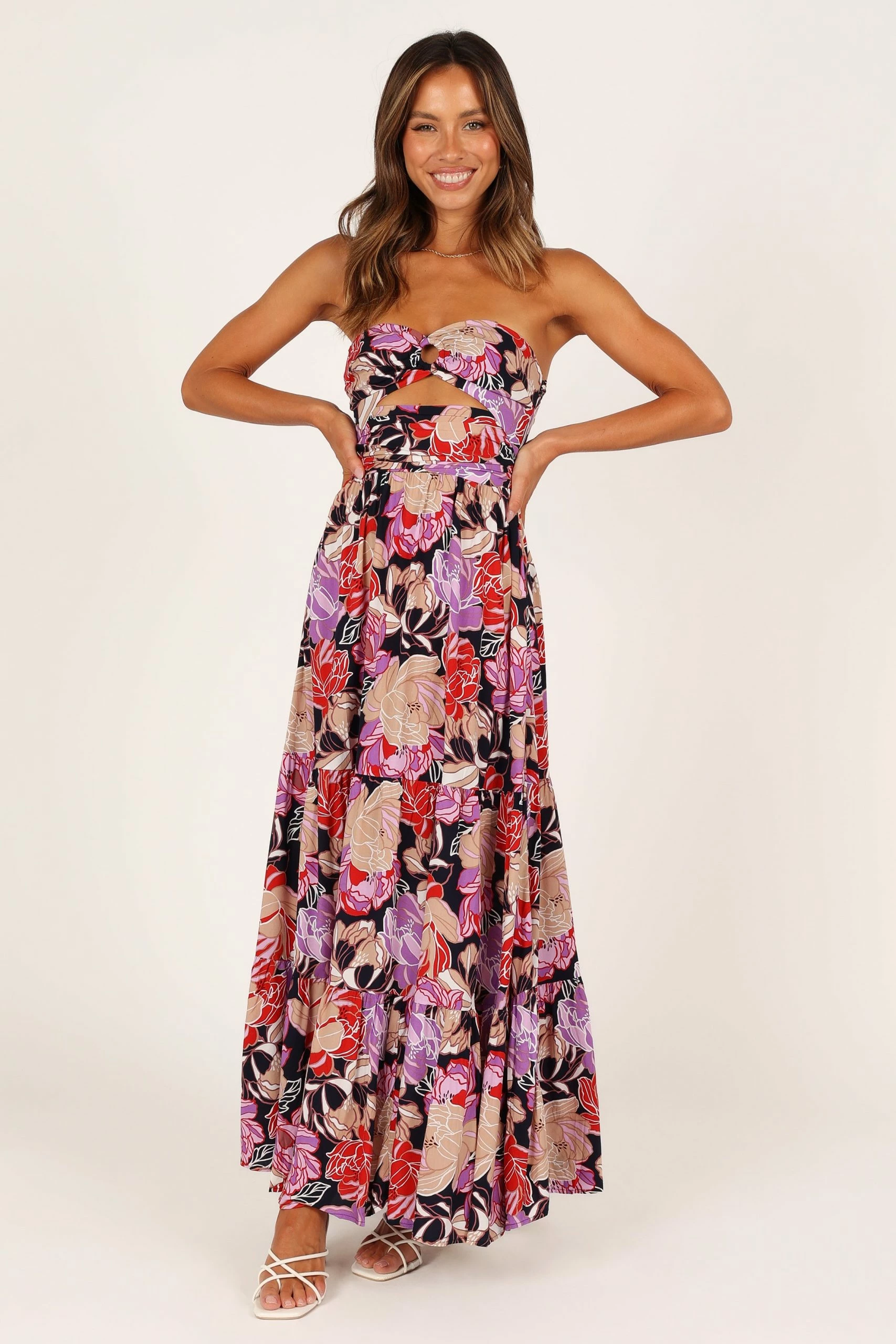| DETAILS Sway into summer in style with this beautiful maxi length dress! Show off your curves with a sweetheart neckline, ring detail on the bust and a cut out feature under the bust. With an invisible side zip and hook and eye clasp for easy wear, you’ll be ready to take on any party!