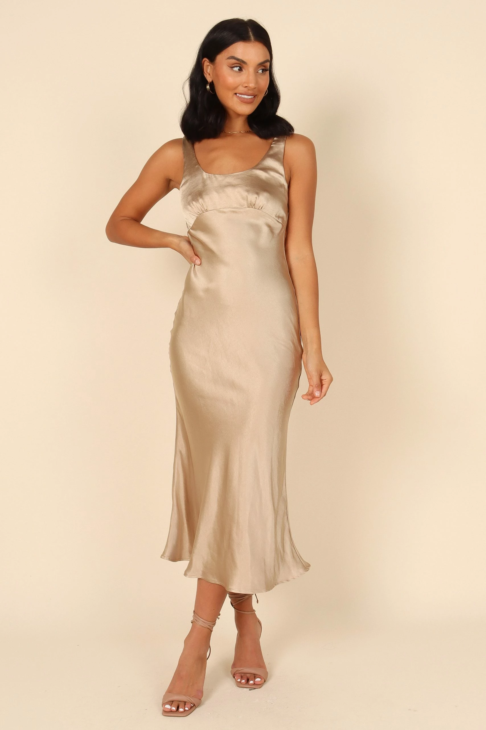 | DETAILS The perfect party dress is here! Look no further than this chic midi-length number that has all the bells and whistles you need. Featuring a round neckline with non-adjustable straps and a back neck opening with tie close detail, it shows off just the right amount of skin while giving you enough coverage too.