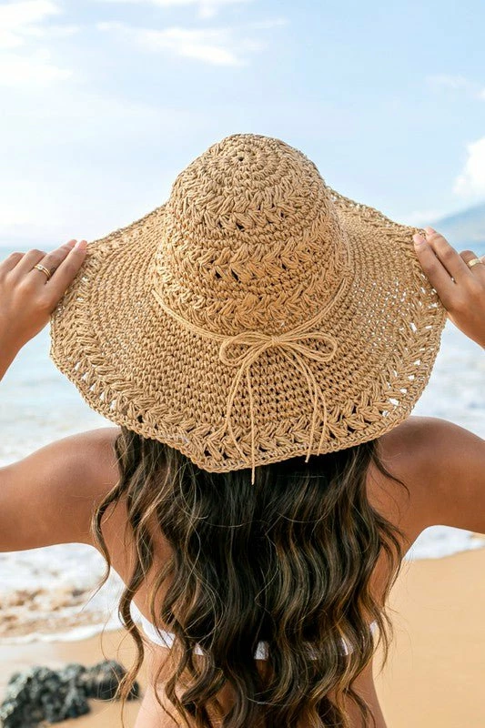 | DETAILS Feel summery and stylish with this beautiful straw weave hat! Crafted with a wide brim and featuring a raffia bow accent, you’ll be sure to turn heads wherever you go. Enjoy the sun while keeping your face protected in this fashionable accessory.
