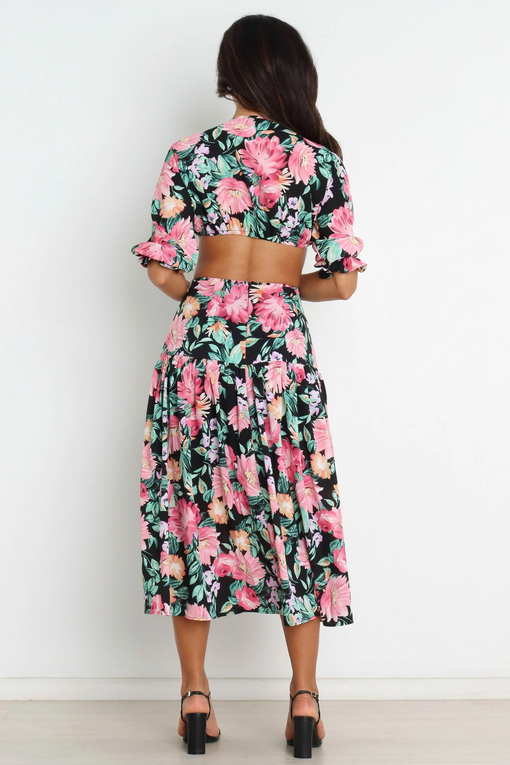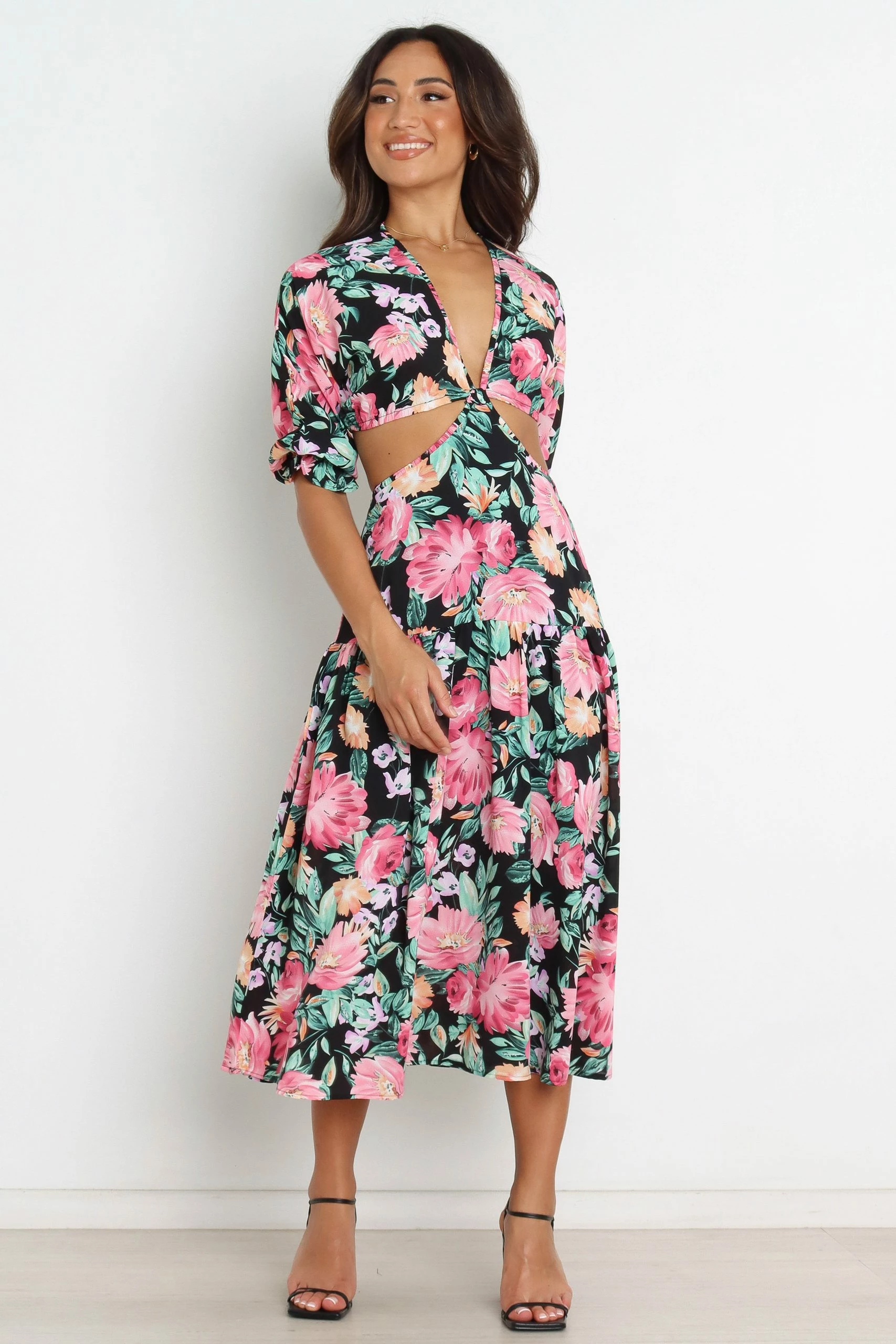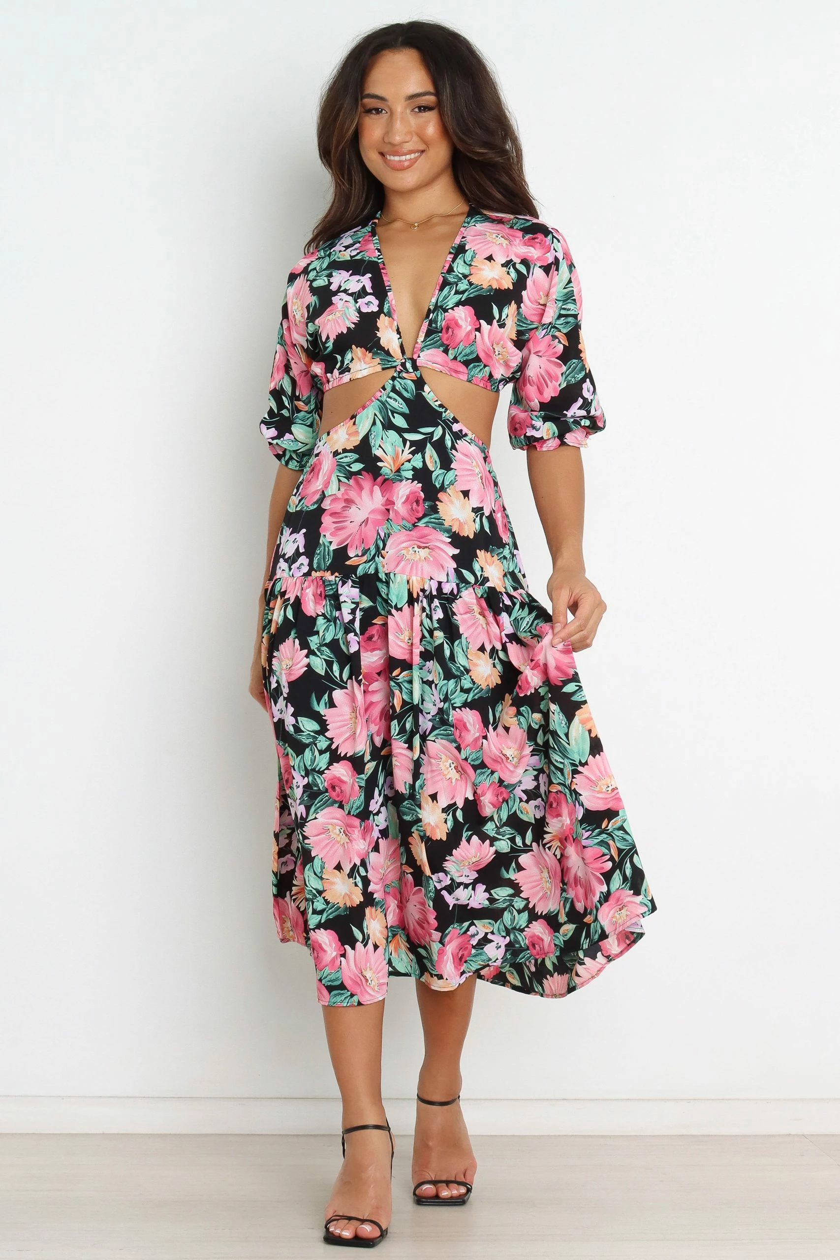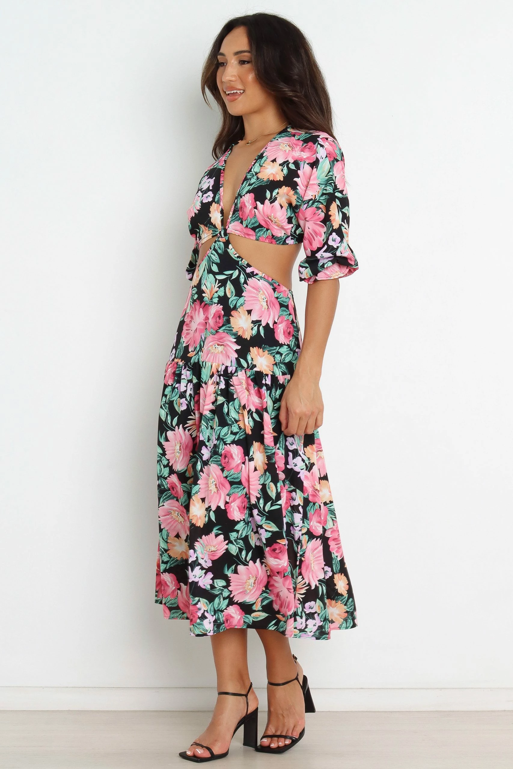 | DETAILS Make a statement with this maxi dress! Featuring a v neck line, long sleeves and elasticised ruffle cuff for beautiful volume. A cut out detail on the front of the dress adds a touch of sassiness, while an invisible zip at the back ensures easy dressing.
