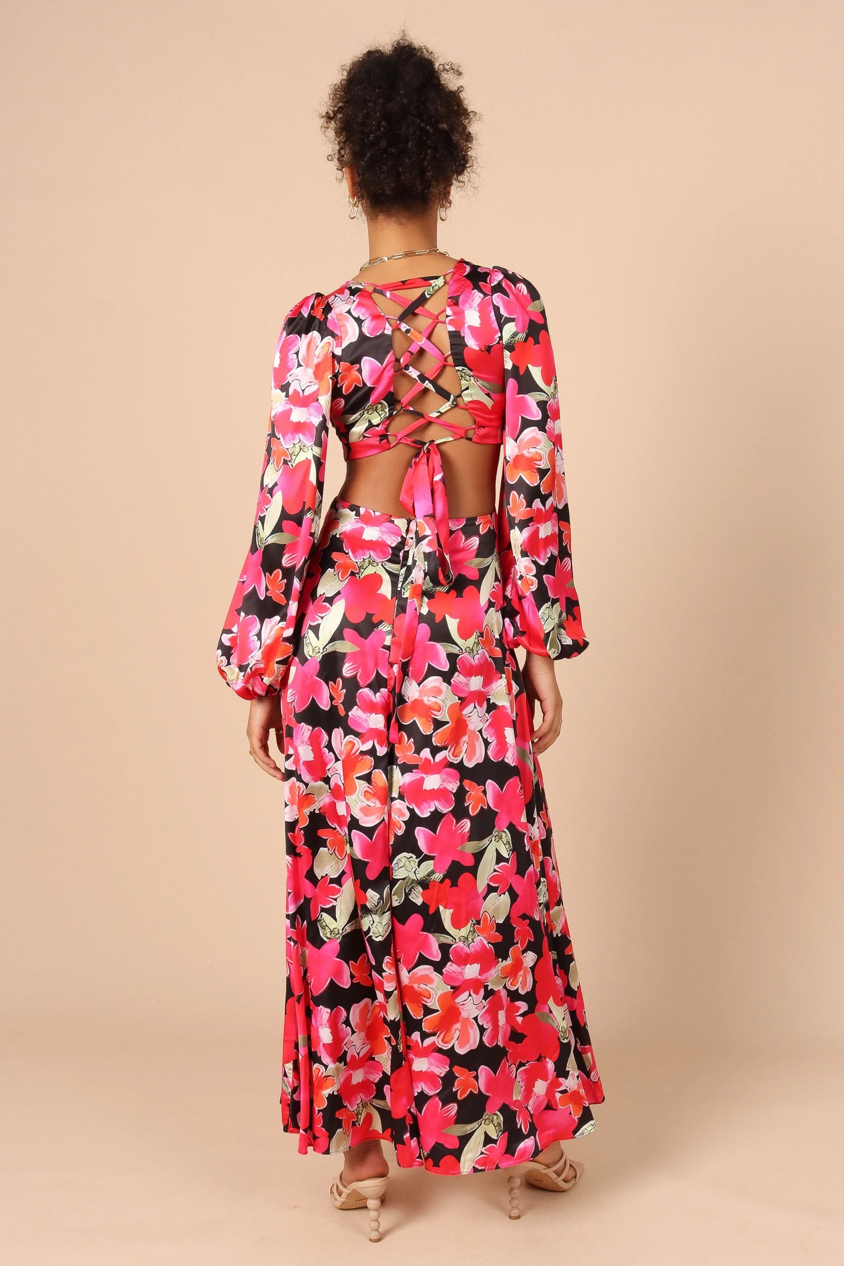 | DETAILS Step into summertime with this floral dress! With a v-neckline and long sleeves, it’s perfect for any special occasion. The elasticised cuffs and side cut out detail add an extra bit of sass to your look, while the back invisible zip and hook and eye clasp keep everything secure.