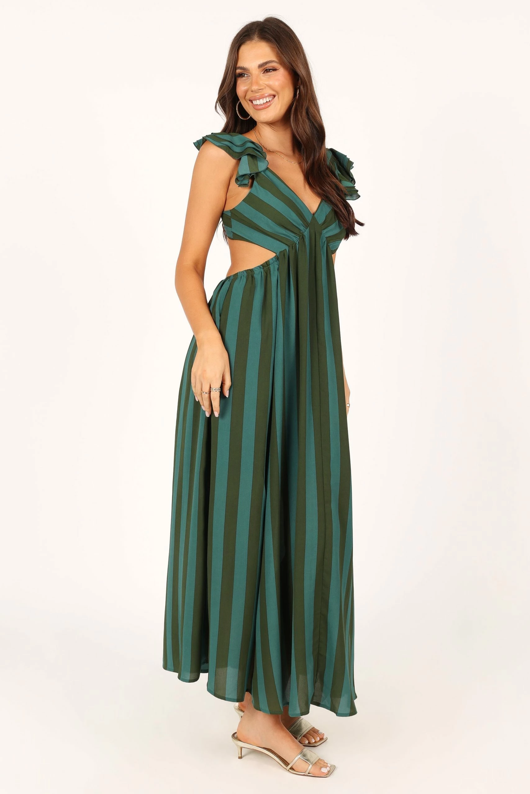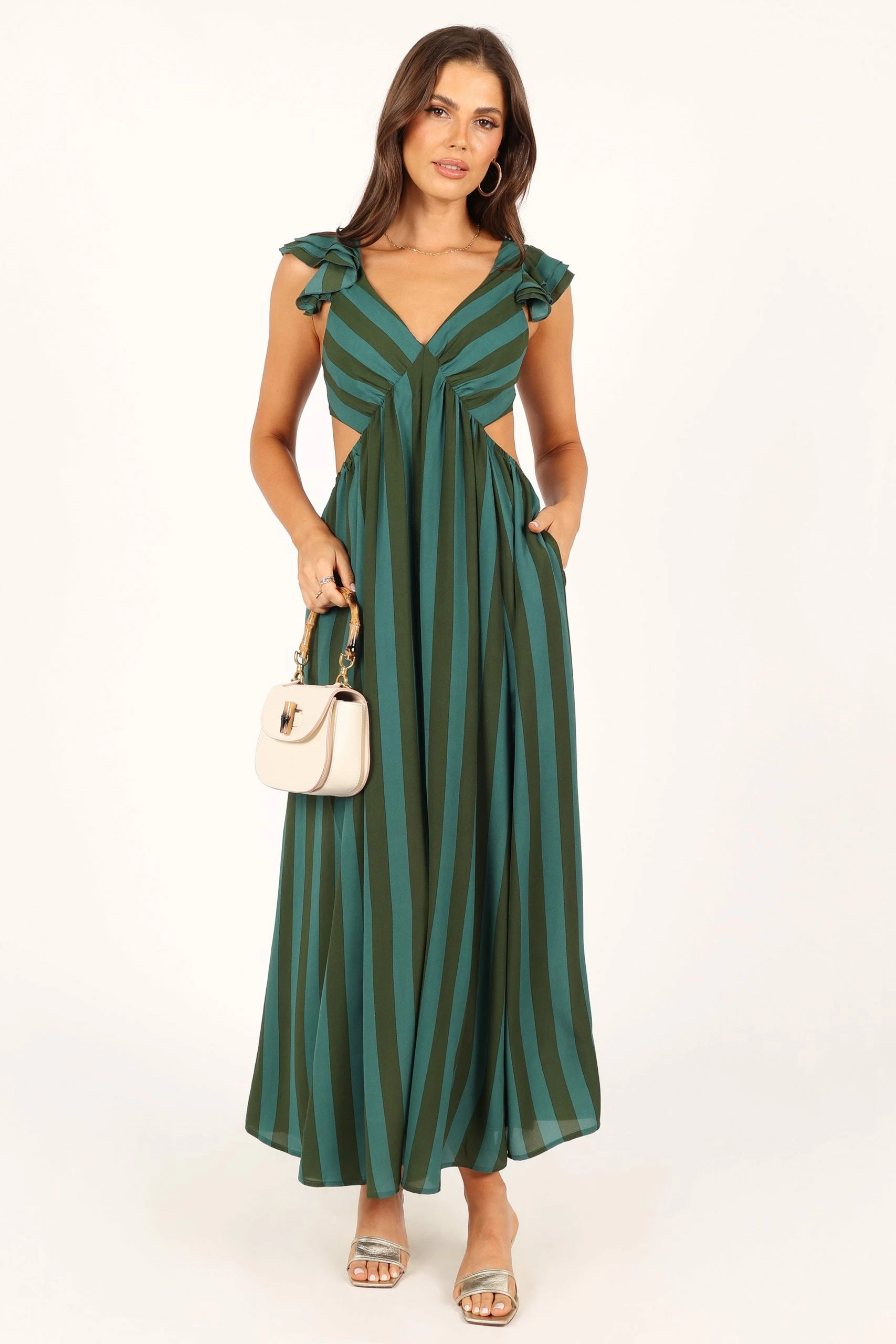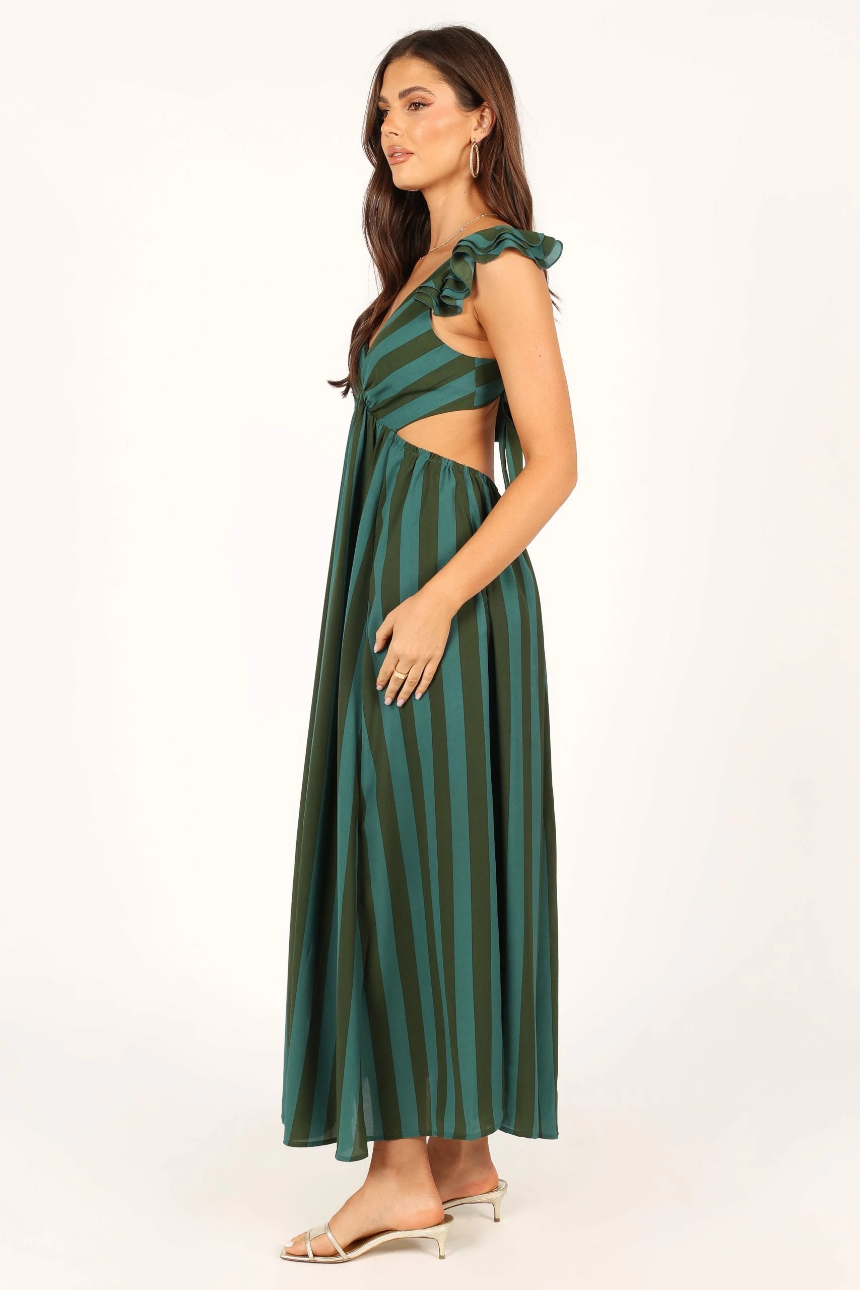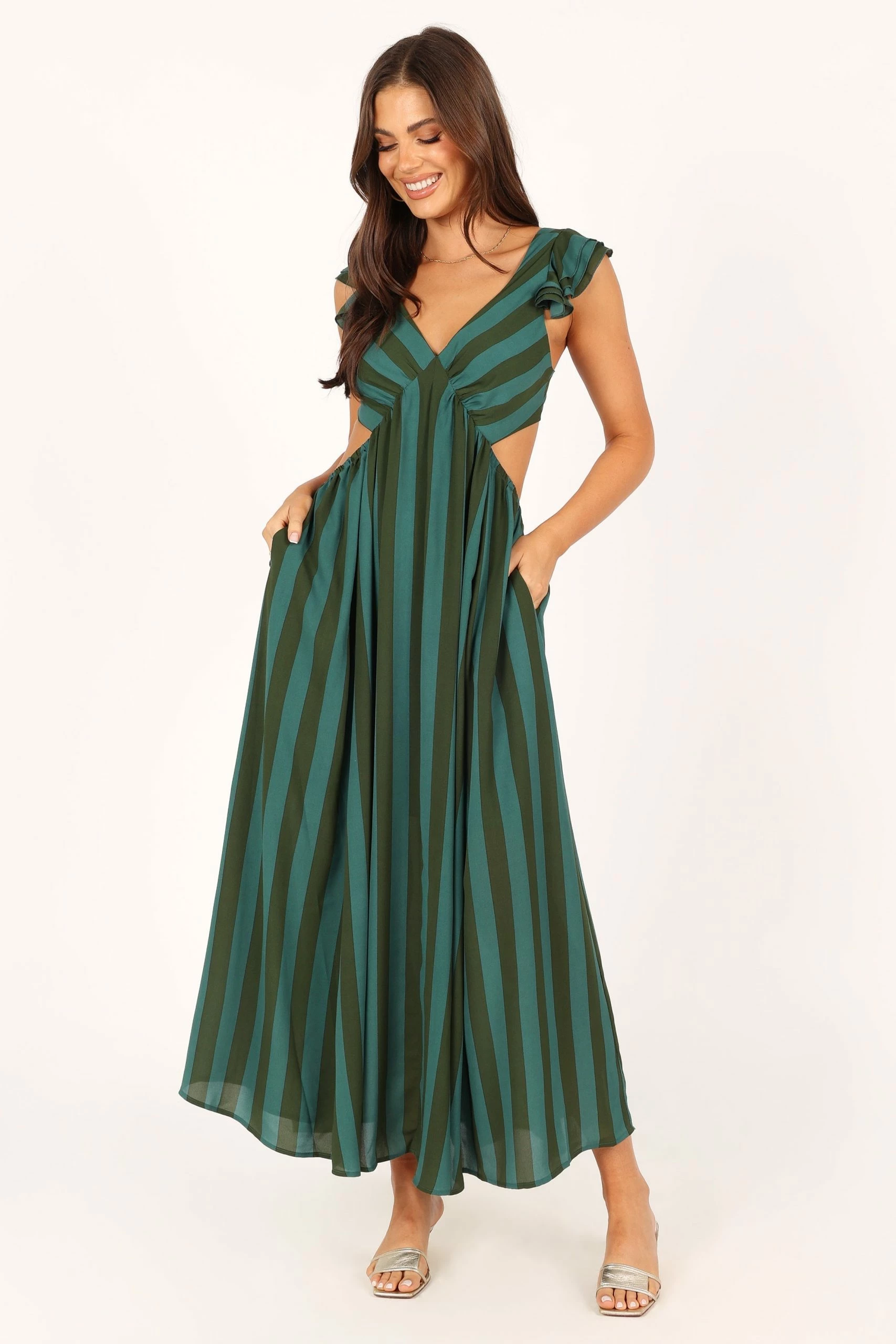 | DETAILS Ladies, turn heads in this must-have maxi length dress! Featuring a gorgeous v neckline with tie back closure, adjustable straps and cutout detail, this dress is the perfect combination of fashion and function.