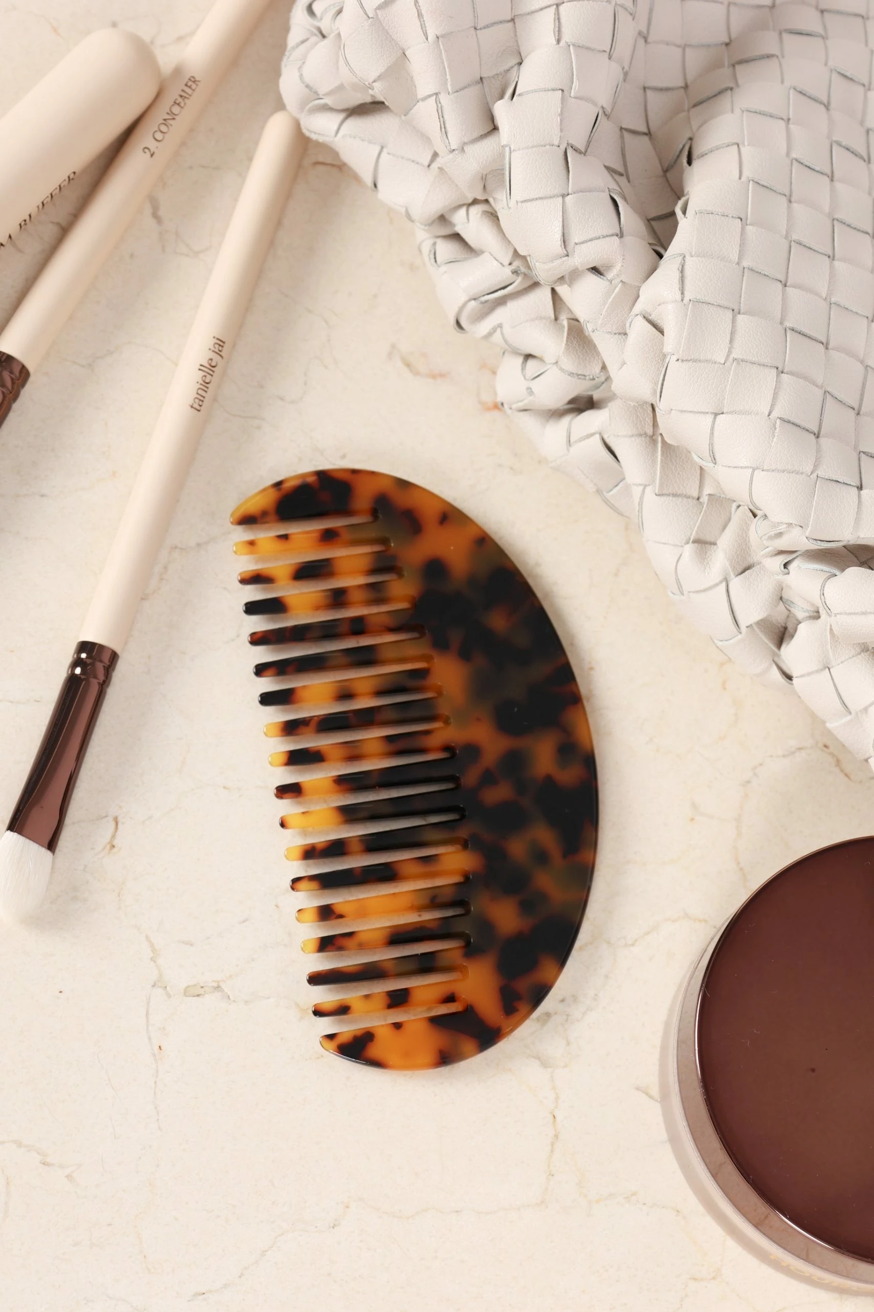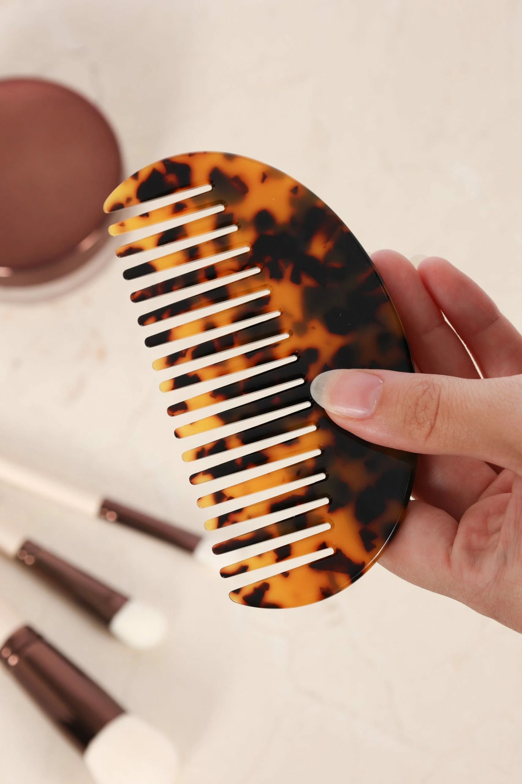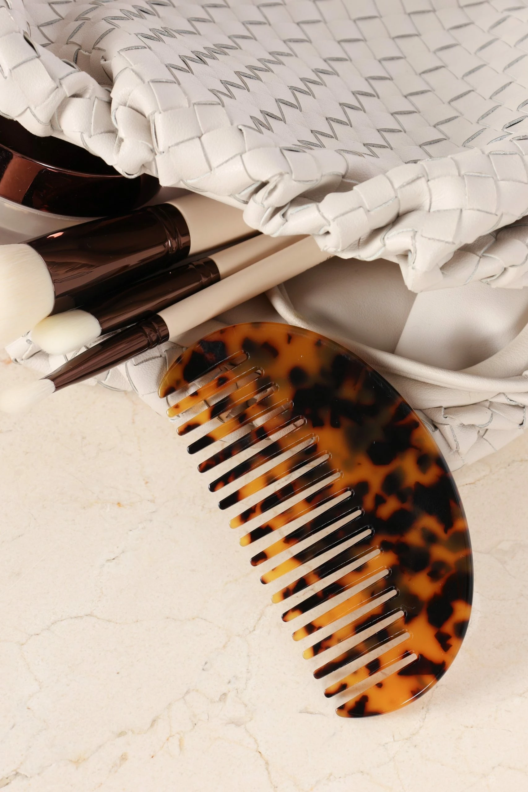 | DETAILS If you’re looking for the perfect hair comb to add a touch of style and sophistication to your handbag, then look no further than this gorgeous tortoiseshell design! This wide tooth comb is perfect for detangling those unruly locks and ensuring that your ‘do’ looks perfect every time.